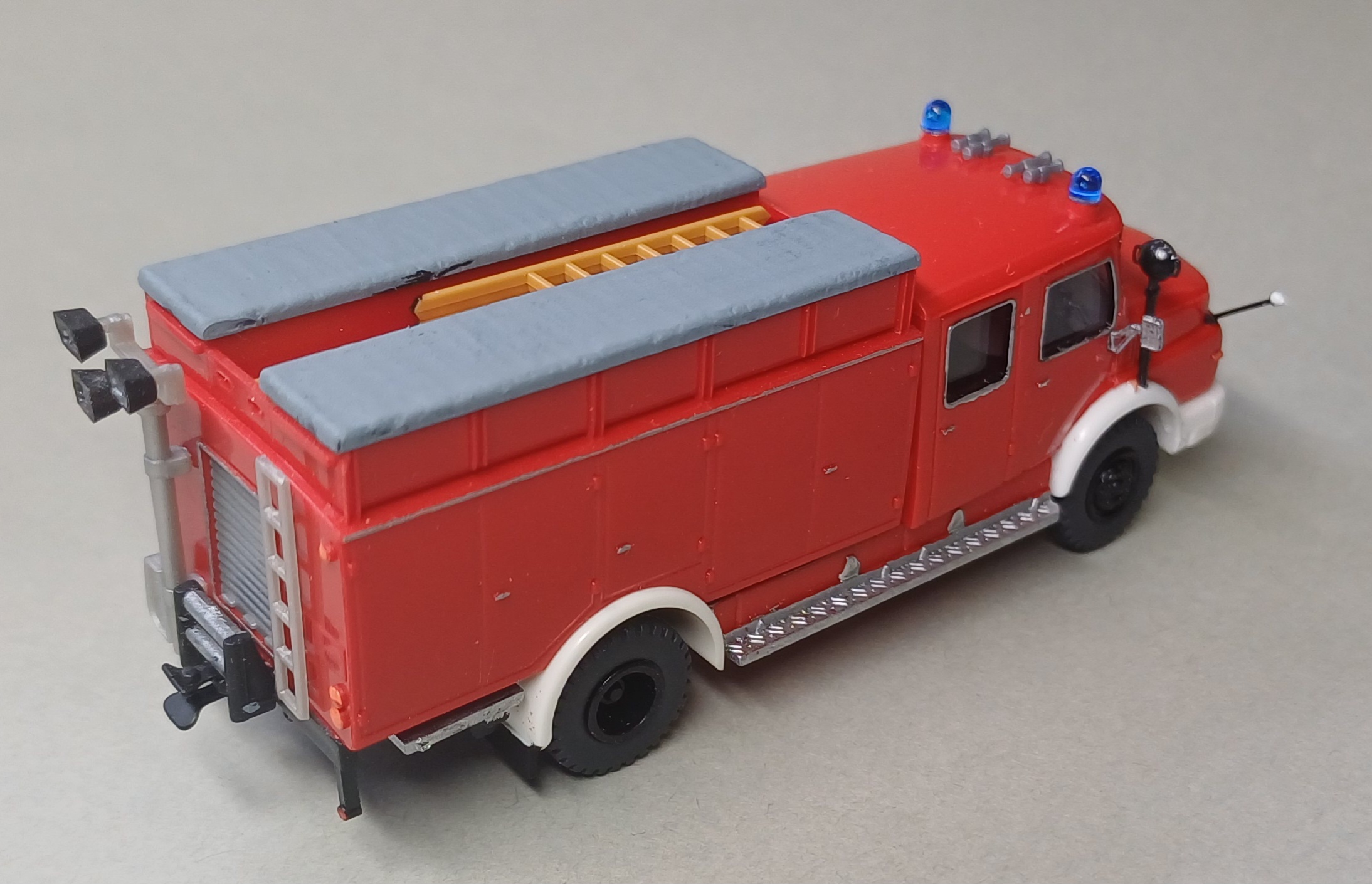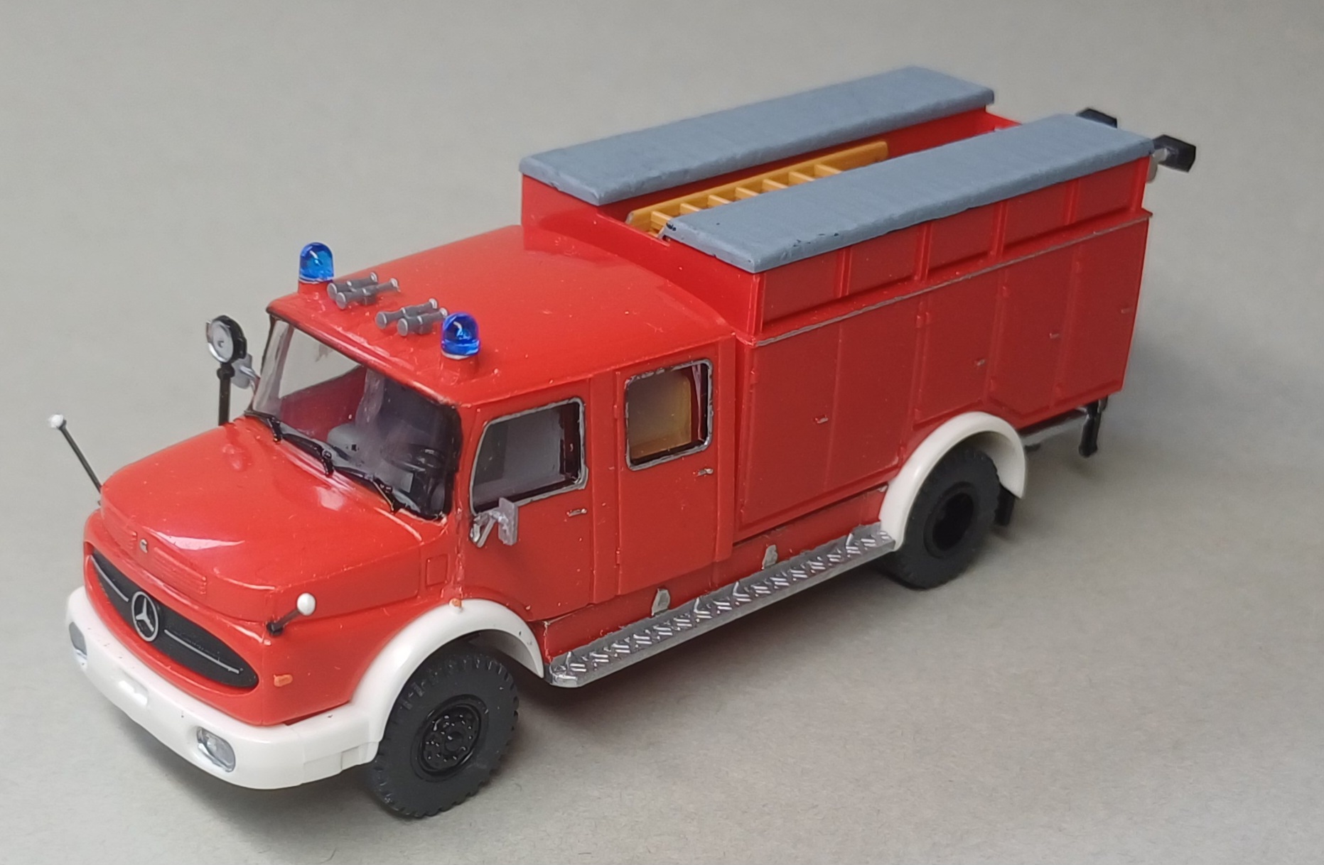 ich find den gar nicht so "unschön" - das Fahrzeug gefällt mir. Kleiner Änderungsvorschlag: Am Kühlergrill den Rand wegfeilen und es etwas nach vorne versetzen und ggf. die Mercedes-Räder von Modellbau Schwarz (Herpa) verwenden.