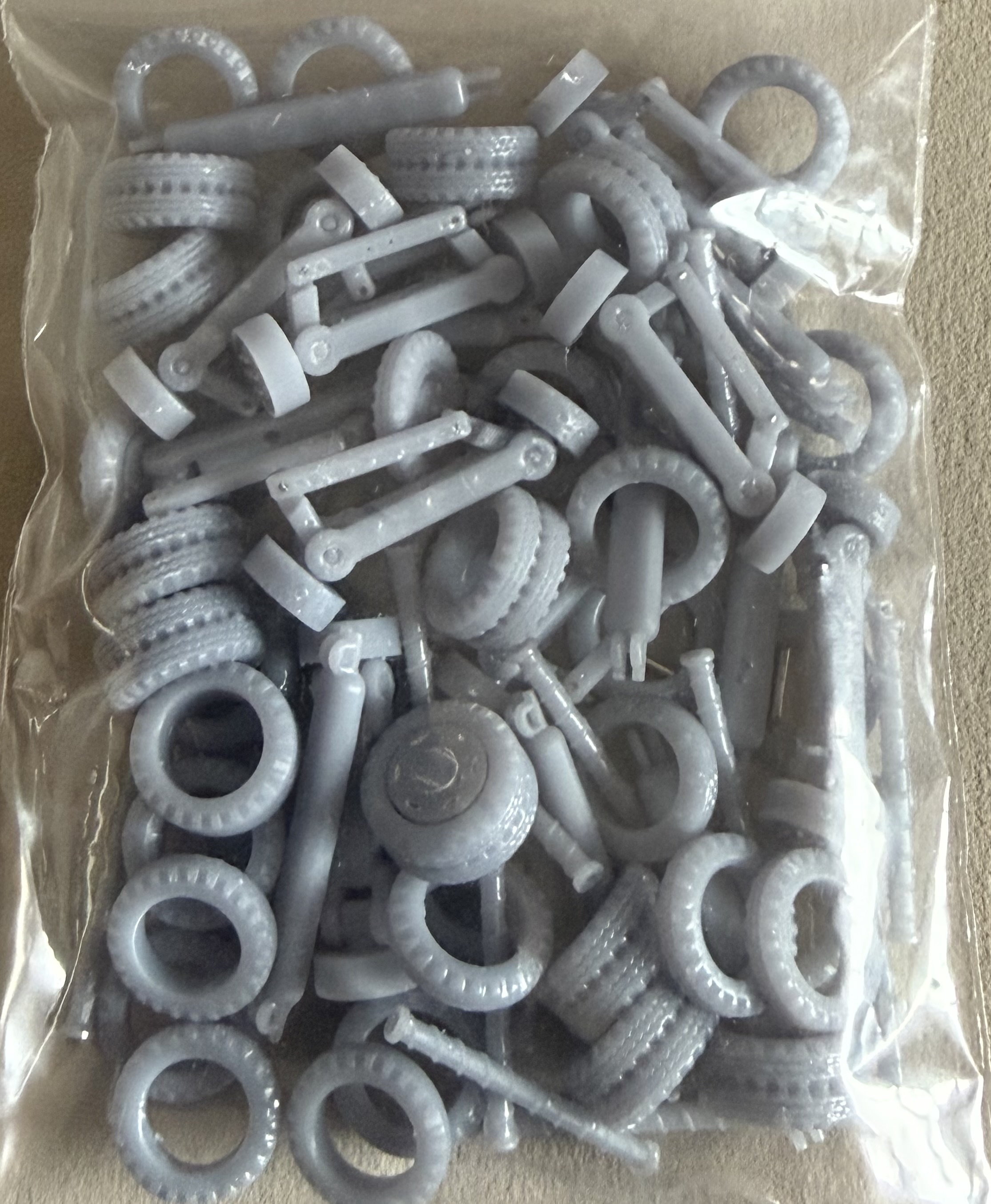 diverse Lenkachsen, Reifen, Saugschläuche, Feldtragen als Reste von Bausätzen T. Voges