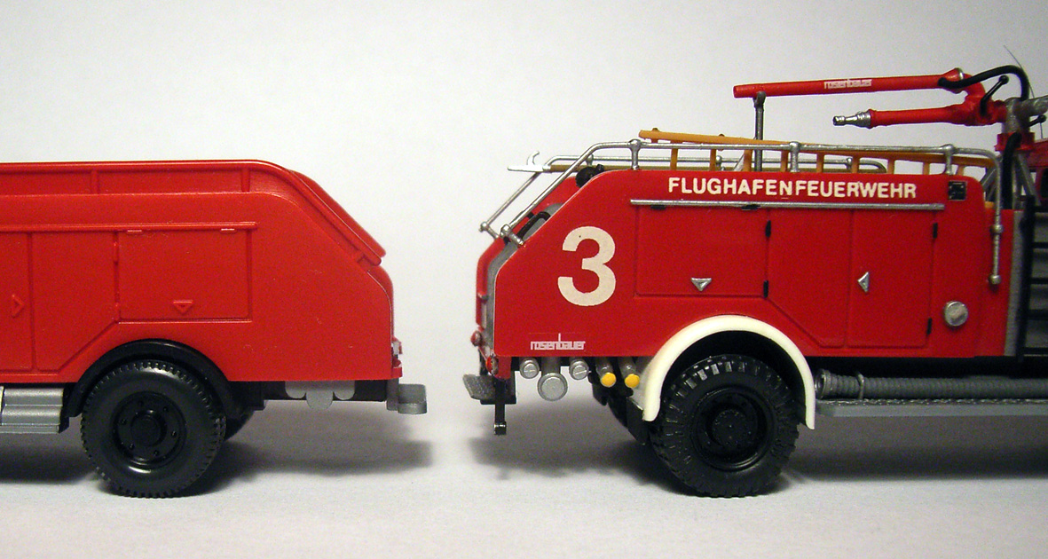 Der Flughafen Nordstadt hat doch auch ein FLF 30-1!!! Das ist das ältere der beiden Rosenbauer-FLFs; mit Lattenrost statt Riffelblech, geänderter Beladung und - selbstverständlich! - offenem Pumpenraum! Das Modell hat momentan nur einen entscheidenden Nachteil: