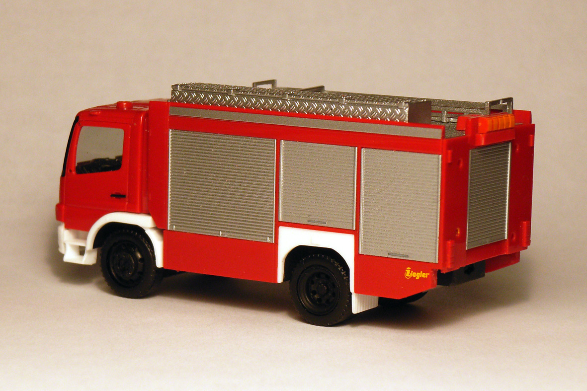 Im Klartext: Ich hab' tatsächlich das Modell noch mal zerpflückt (gut, daß Herpa-Plastik manchmal doch nicht sooo gut klebt!), das LF-Fahrgestell entsorgt und wie Björn das RW-Fahrgestell verwendet! Der Lüfter kommt zwecks Felderprobung auf eine meiner (künftigen) DLK; z.B. die neue Econic-Leiter von Wiking. Und der Blinke-Pfeil ist dann doch eher was für ein separates Absperrfahrzeug!