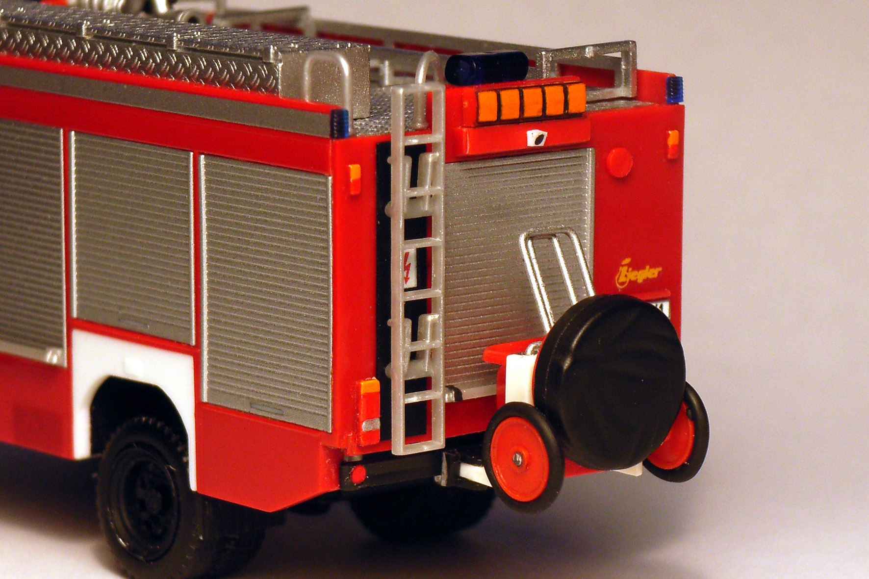 Über die weitere Ausstattung hab ich mir (viel zu) wenig Gedanken gemacht. Wenn jetzt alle Stricke reißen, lass ich nicht nur den Pfeil sondern auch den Lüfter weg und stationiere das TLF bei 'ner FF als reines Waldbrand-Auto; dann natürlich mit anderer Bereifung - das wäre die Minimallösung! Oder mit Pfeil und Lüfter und irgendwelchen (von außen eh nicht sichtbaren) Sonderlöschmitteln als S-TLF bei einer autobahnnahen BF-Wache mitten im Industriegebiet - das wäre dann die Maximallösung!
