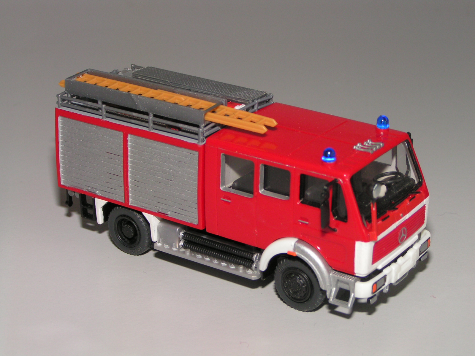 nicht nur in Thalburg scheint das "Rot-Weiß-Fieber" ausgebrochen ... Nachdem nach längerer Zeit endlich mal wieder ein Modell fertig geworden ist, möchte ich zu diesem Anlaß die Freiwillige Feuerwehr Weißeck vorstellen: Weißeck ist eine Kleinstadt in strukturschwacher Region; die Feuerwehr ist Stützpunkt und verfügt über einen sehr gemischten Fuhrpark. Markenzeichen der Wehr ist die in Hessen früher weit verbreitete Rot-Weiß-Lackierung. Soweit der Vorrede, hier erst einmal ein Überblick über den aktuellen (noch nicht vollständigen) Fuhrpark: