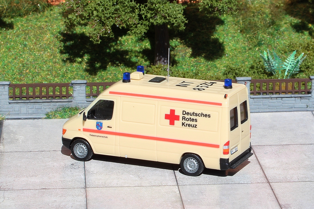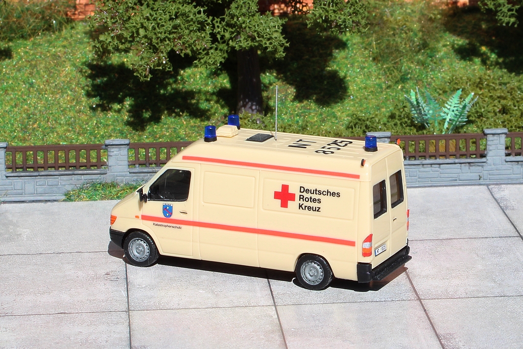 Es handelt sich um den neutralen RTW in Elfenbein, den es mal von Herpa gegeben hat. Das Modell hat nur eine Detailbemalung bekommen und wurde mit entsprechenden Decals versehen.