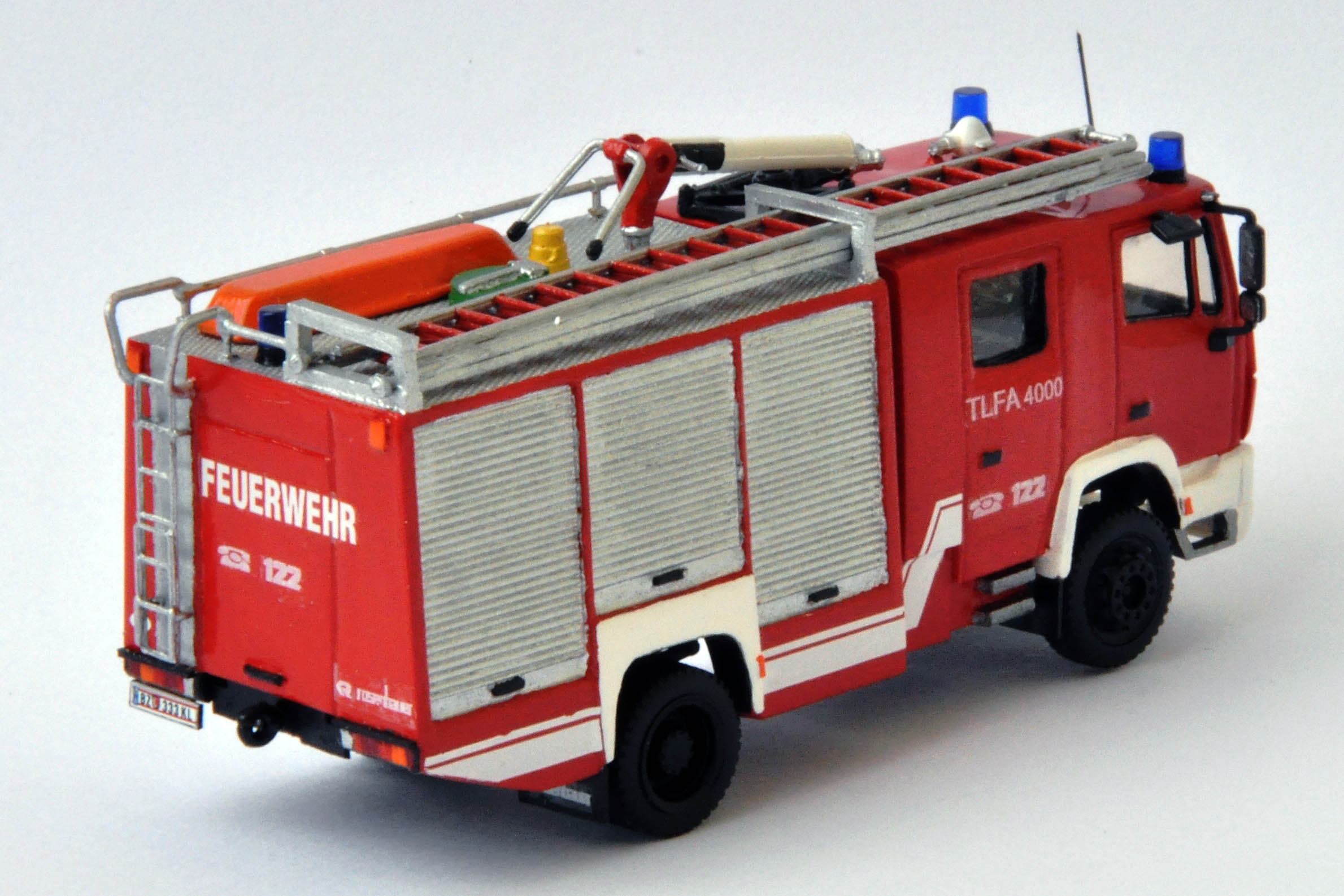 Ich melde mich nach längerer Zeit einmal wieder mit einem typisch österreichischem Modell; einem TLFA 4000 auf Steyr Fahrgestell. Das Fahrzeug wurde von Rosenbauer aufgebaut und besitzt einen Dachmonitor, eine Schiebleiter und eine Korbtrage. Ebenso befinden sich ein tragbarer Werfer und ein Arbeitsscheinwerfer auf dem Fahrzeugdach.