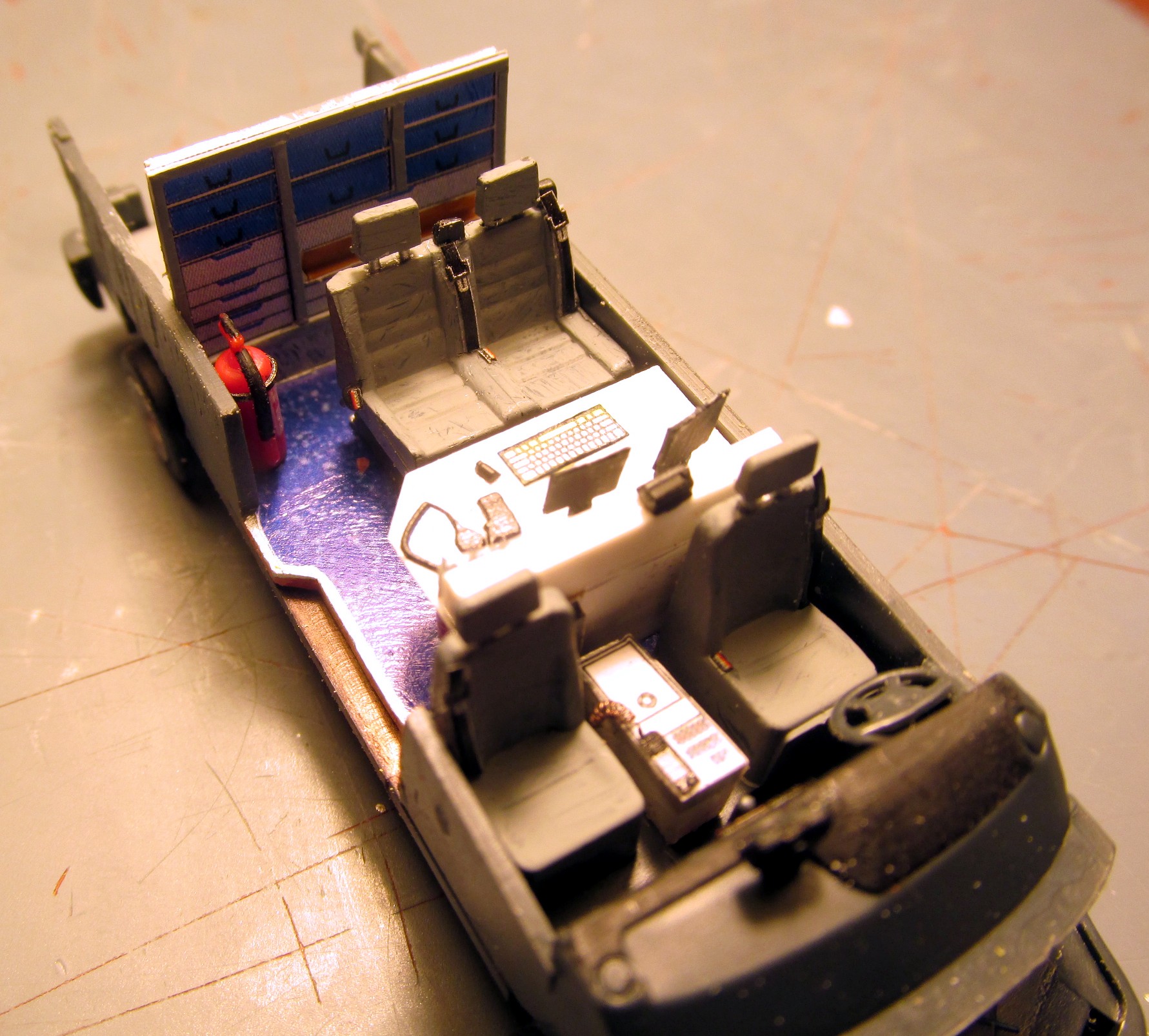 Wie schon gesagt, hatte ich die Inneneinrichtung bei dem Ersten GW ja nur grob angedeutet. Bei dem noch im Bau befindlichen GW-Messtechnik ist zwar genauso viel, bzw. wenig davon zu sehen - aber ich hatte gerade Zeit, Lust und ein paar Teile übrig .......... :?