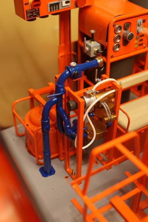 Aber ehrlich gesagt, könnte ich mir durchaus vorstellen, wie man eben den roten Schalter auf gelbem Grund und die vier grauen Schalter drehbar bauen könnte. Aber letztlich ist das natürlich völlig schnurz, man muss es eh nicht übertreiben (bei meinem 1:24 Hydraulikaggregat ist auch nur der Umstellhebel (Schere oder Spreizer) beweglich, der Schalter nicht (dafür sind wiederum die Schlauchkupplungen und der Netzstecker steckbar, wolltest Du doch in 1:12 auch übernehmen...