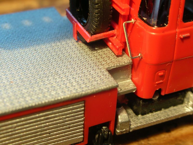 Am RW2 von letzter Woche Preiser-Allradfelgen, Chromspange im Grill und Lüftungsöffnungen in den Türen nachgetragen. Ach ja, und die hölzerne Schiebe- durch eine Alu-Steckleiter mit flacherer Roco-Leiterpritsche ersetzt, ist auch im ersten Bild zu erkennen.