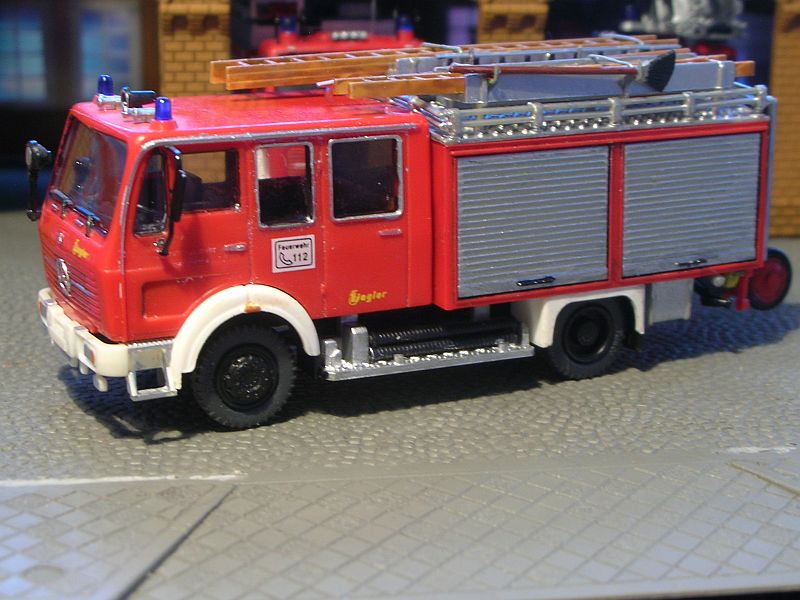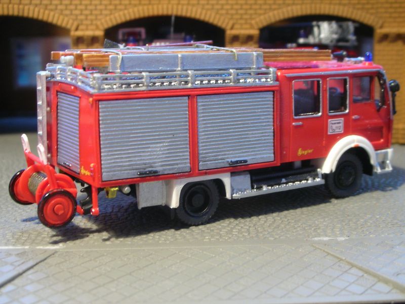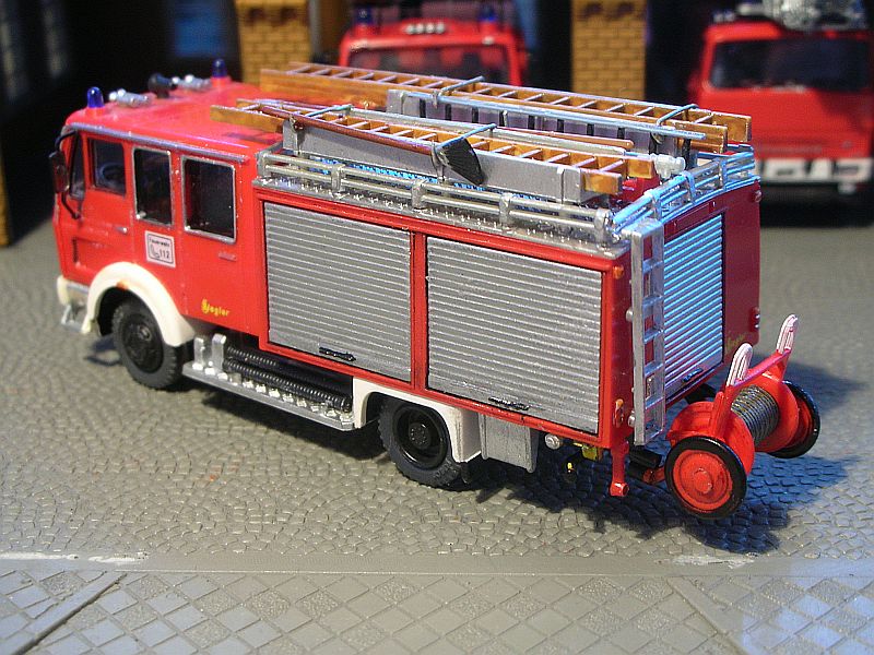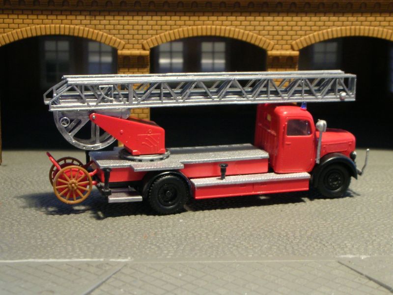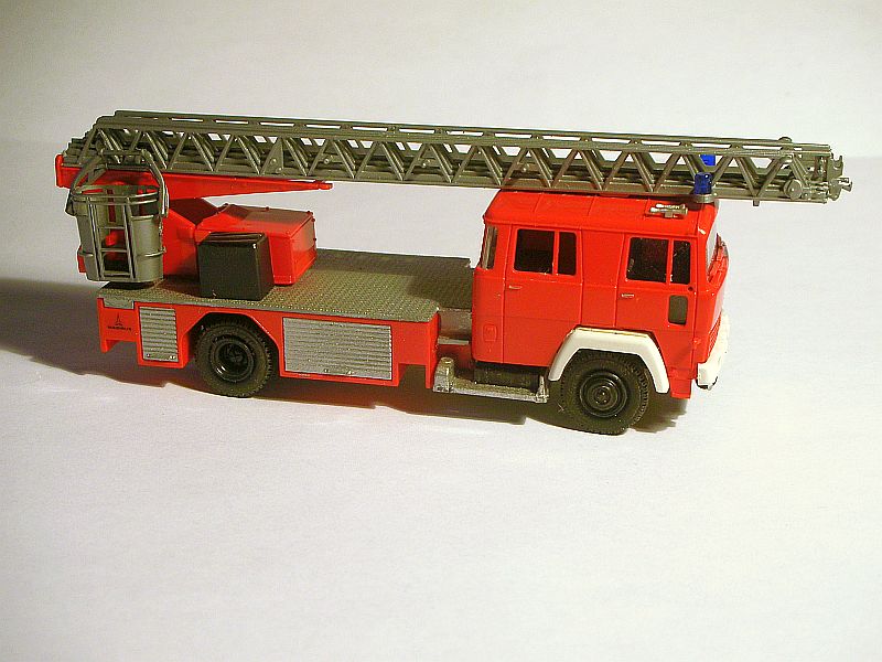 Mir gefällt's aber, und angesichts der gebraucht konkurrenzlos günstigen Basismodelle kann ich mit dem Fehler leben. Also erstmal ein passenderes Chassis (Mercedes L3500 Staffel) für meine neue Metzleiter besorgen -- Magirus mit Metzleiter, das geht ja nu gar nich