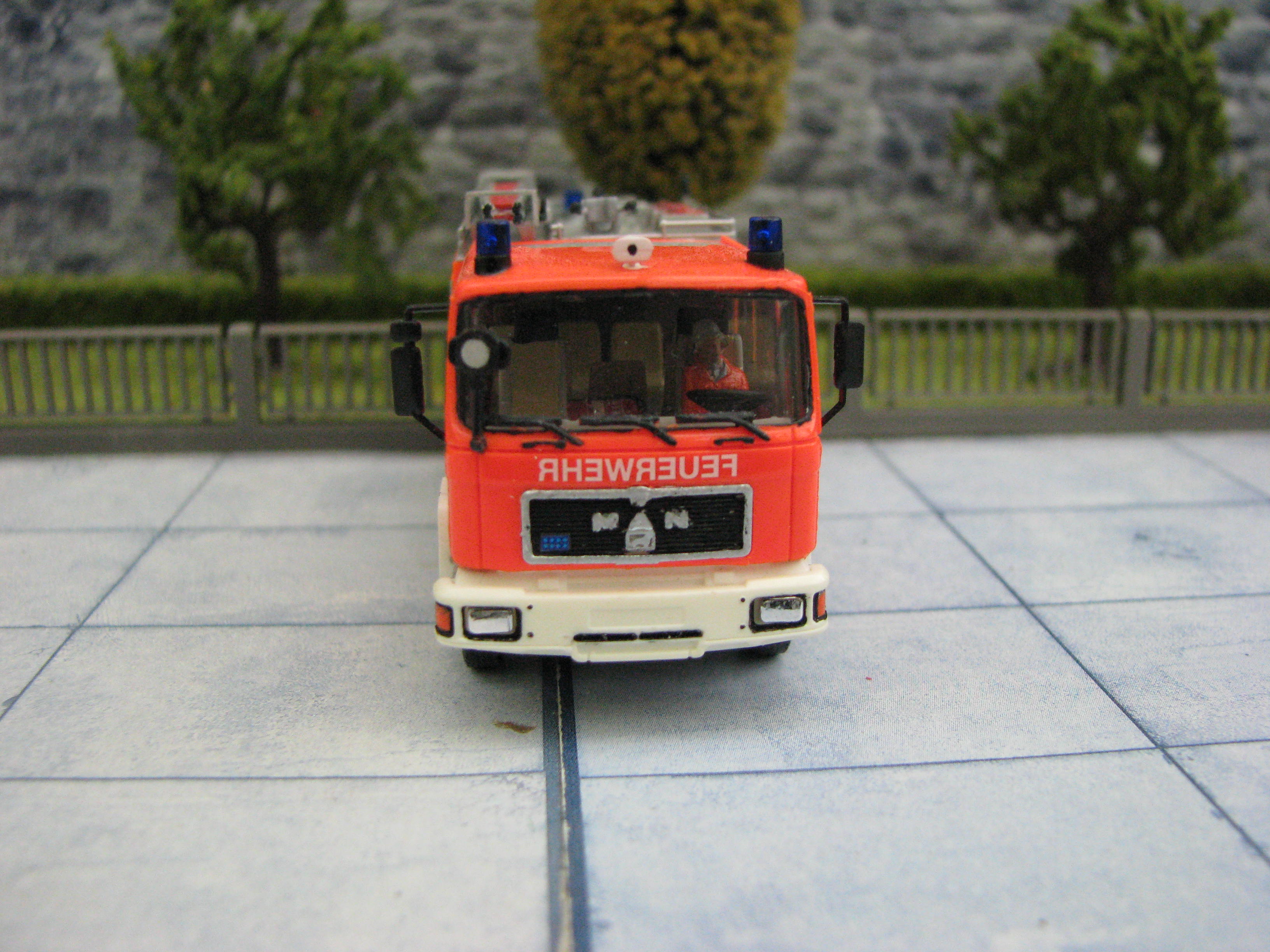 Das altbekannte Preiser Modell wurde out of Box gebaut. Da mir die Leiteranordnung nicht gefiel erhielt das Modell eine Herpa Leiterpritsche mittig auf dem Dach mit passender Steckleiter. Ebenso wurden die Kotflügel schwarz lackiert, dazu noch ein Paar kleine Farbakzente und Decals fertig :D