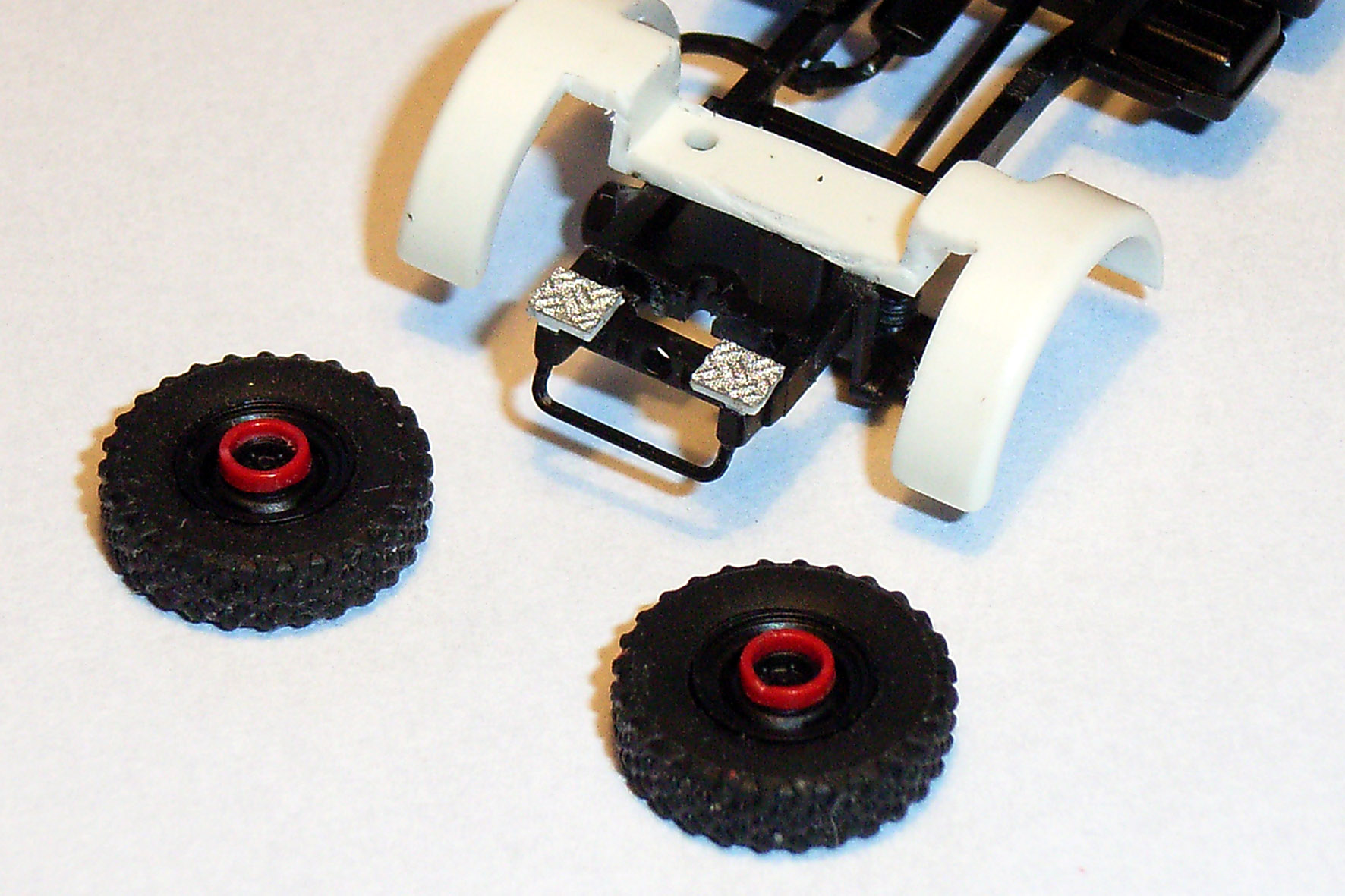 Woher stammen denn die Auftritt-Ringe an den Felgen? Das ist eigentlich gar keine schlechte Idee, wenn man gerade keine große Anzahl an alten Bundeswehr S 404er von Roco rumliegen hat