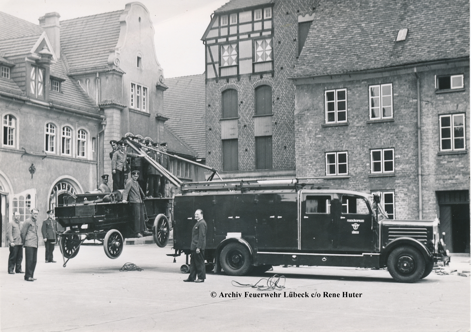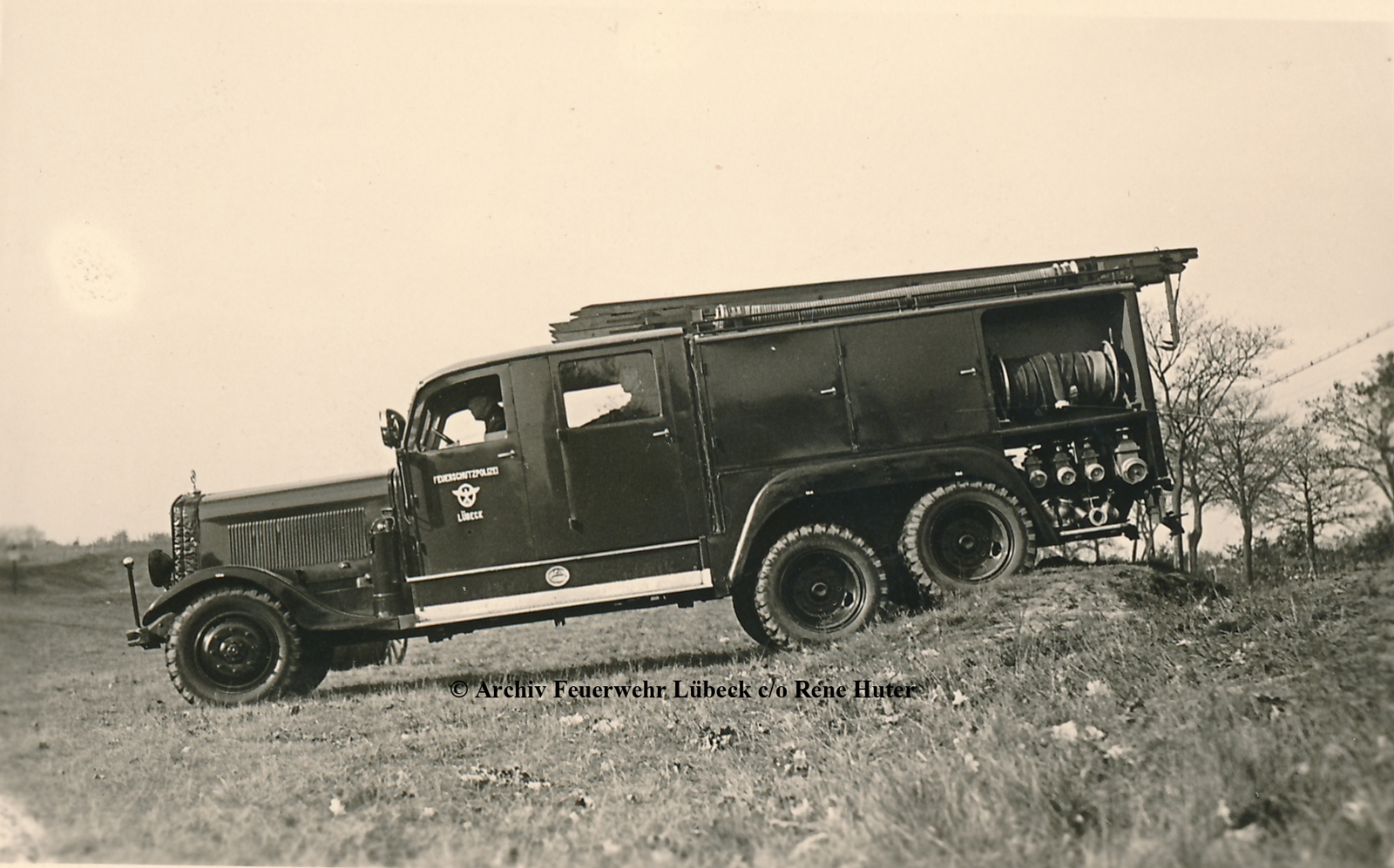 René Huter hat geschrieben:Es begann die Zeit als aus den Feuerwehren die Feuerschutzpolizei wurde. Es ging bei der Feuerwehr militärischer zu und auch die Fahrzeugfarbe rot verschwand und wurde durch Tannengrün, Luftwaffengrau und Sandfarben ersetzt. In Lübeck wurden mitte der 1930er Jahre drei Einsatzfahrzeuge beschafft, die schon die Aufschrift Feuerschutzpolizei trugen, aber noch in Rubinrot lackiert waren und diese Lackierung nicht geändert wurden, während des 2. Weltkrieges. Warum das so war lässt sich leider nicht mehr ergründen, aber wir haben Aussagen von älteren Kollegen die dies bestätigen.