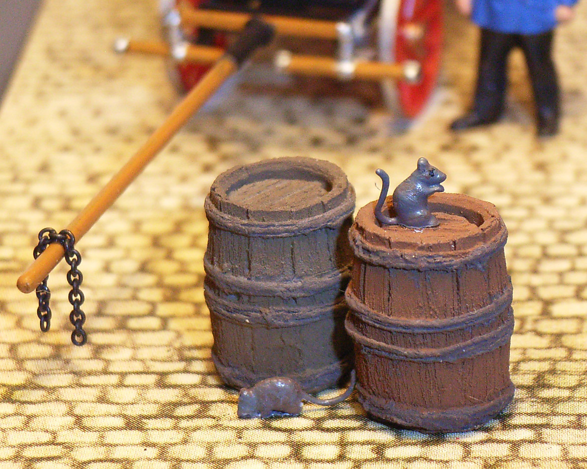 Auch das Kleindiorama passt zum Modell. Typisch für die Zeit waren die Ratten auf den Fässern. Super in Szene gesetzt.