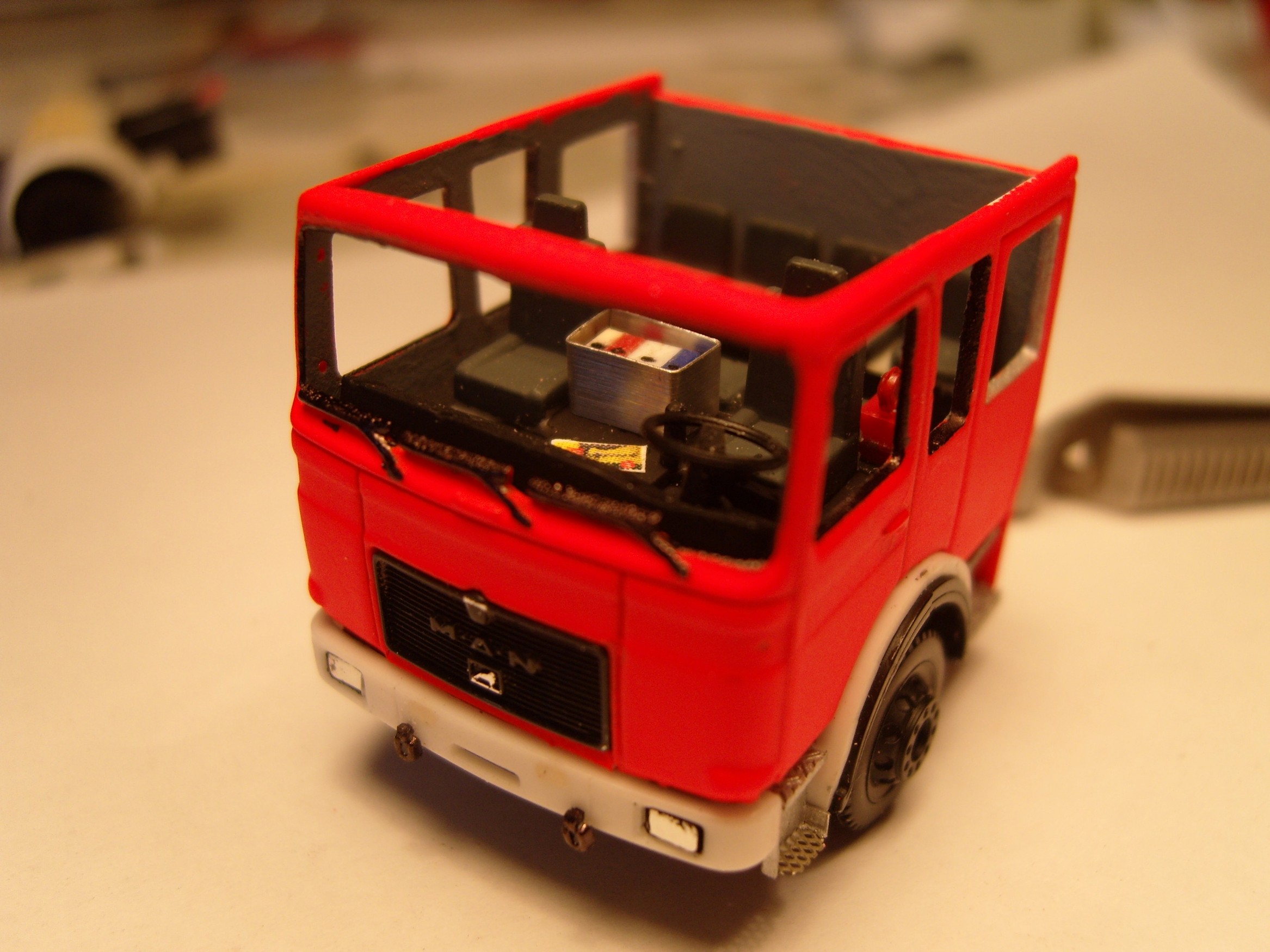 . Schade - aber ja nicht schlimm, denn es gibt ja den Backofenspraytip ! Nach 12 - 24 - 36 Std. dann leider die Ernüchterung. 2. Kabine = Tonne... Dritte Kabine gebaut, (so langsam gehen meine MAN Kabinen aus) Grundiert - Lackiert. Ist jetzt drei Tage her - noch geht es