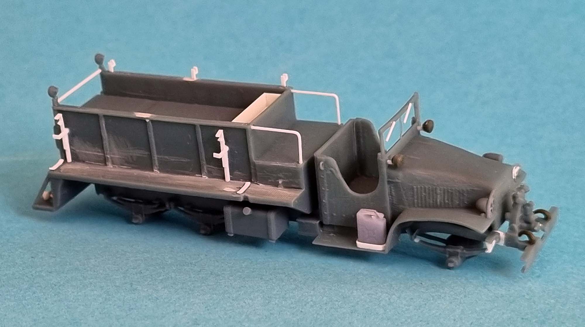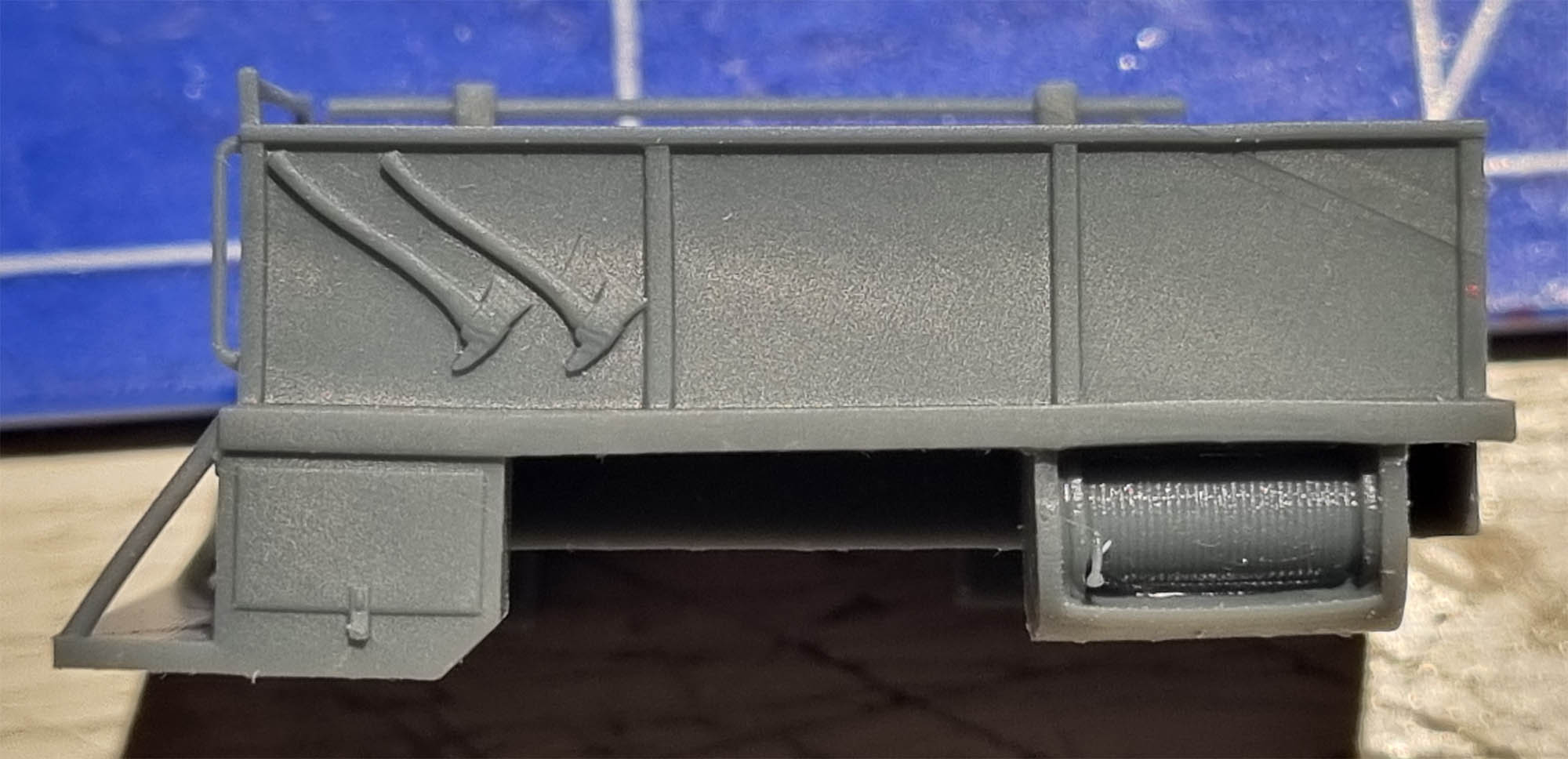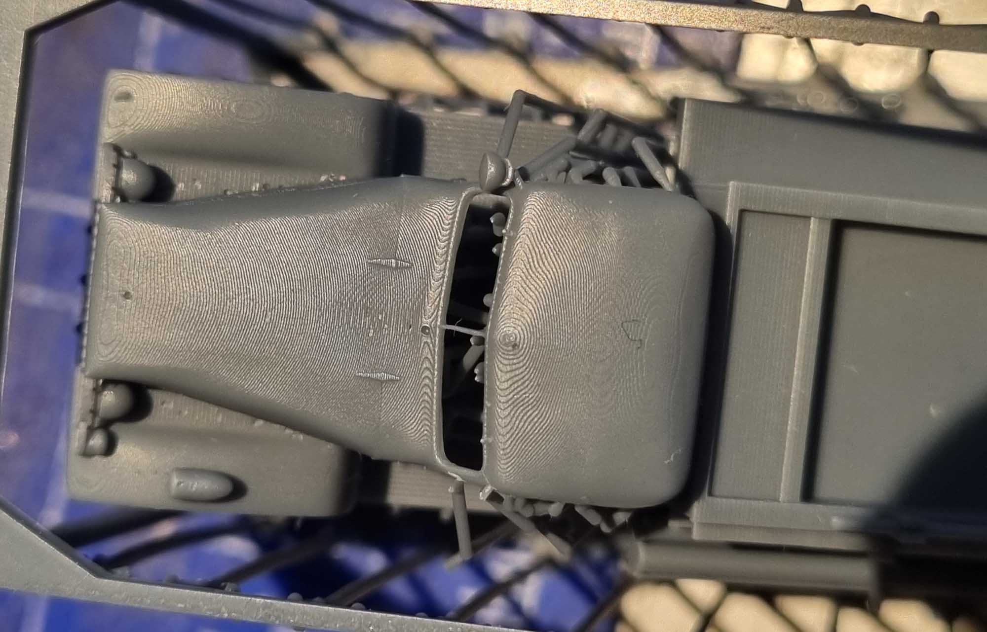 Im großen und ganzen machten die einen recht ordentlichen Eindruck. Die Bausätze kamen in 3D-Druck typischen Halterahmen die sich sehr einfach lösen und versäubern ließen. Dabei sind mir dann die ersten Fehler aufgefallen. Bei den Class 325-Modellen waren zwischen Haube und Kotflügel leichte Dellen zu erkennen. Der Aufbau des Modells war völlig schief. Außerdem wurden hier von den Konstrukteuren verschiedene Typen durcheinandergeschmissen, der Aufbau entsprach rechts und links jeweils anderen Vorbildherstellern. Natürlich habe ich das dann auch reklamiert, vor allem die Löcher und die rechtsseitig komplett mit Material zugelaufenen Schlauchhaspeln.