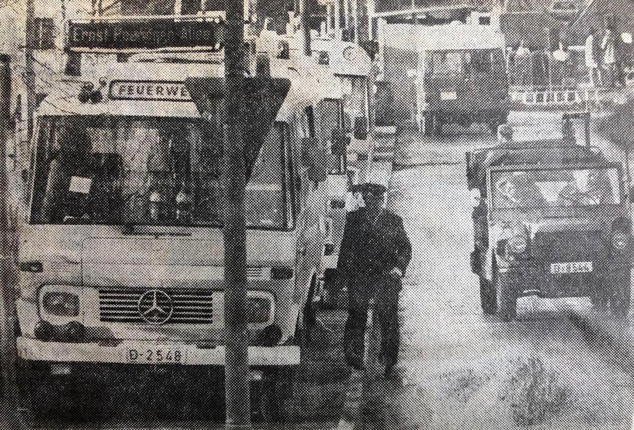 Noch eine interessante Ergänzung: Bei der Durchsicht meiner bfm-Bestände ist mir ein seeehr seltenes Exemplar aufgefallen - nämlich der ELW/MZW der FF Sulingen im Landkreis Diepholz (DH-A 577), ein DKW Munga F 91/8 mit "Festaufbau", Tropendach und Lackierung in RAL 3024!