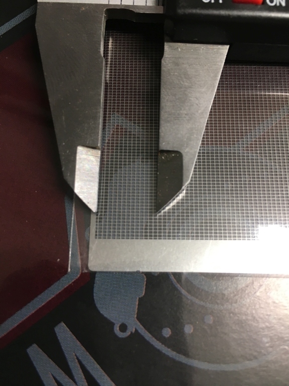 Ausgehend von den Maßen auf dem Display und dem Gitter unter dem Messschieber muss ich allerdings sagen, dass es wohl auch einen Tick zu klein ist. Es scheint zwar ganz leicht größer zu sein als Nr. 00102 Mesh 4x6 von Eduard, aber es dürfte immer noch nicht reichen. Trotzdem würde ich schauen, ob ich dieses Gitter irgendwoher bekommen könnte, man weiß ja nie...