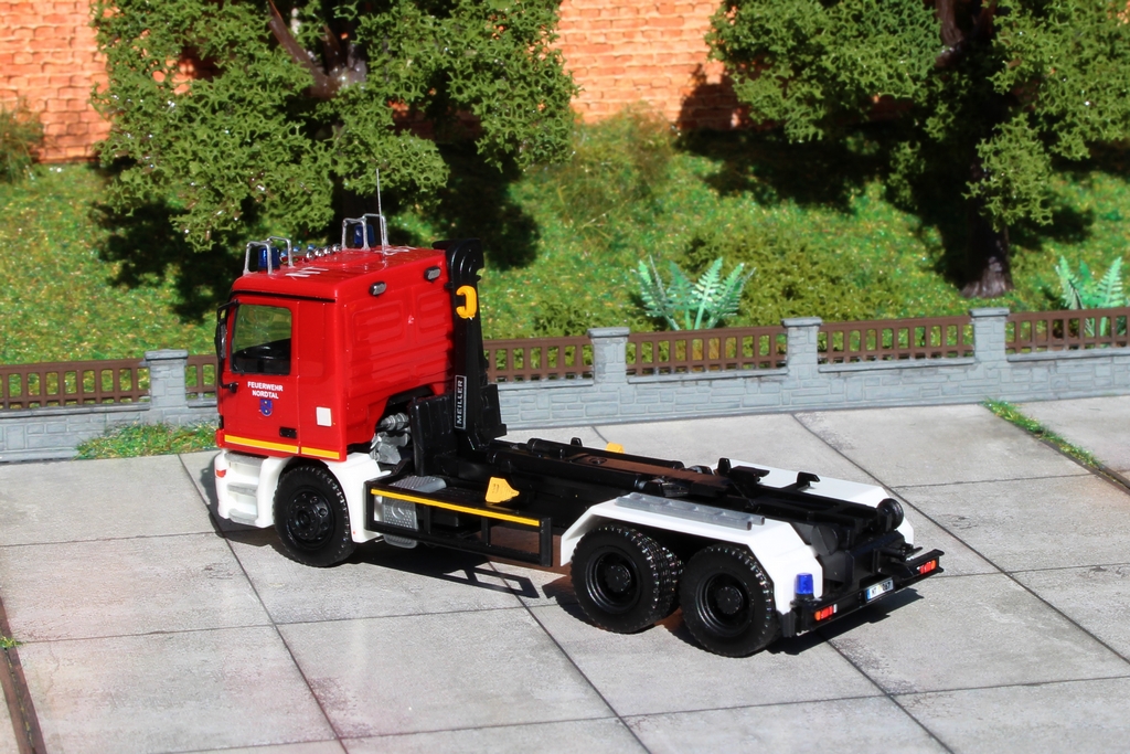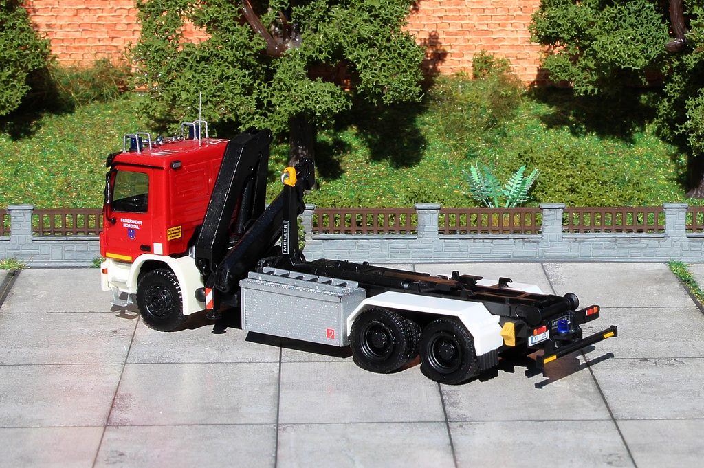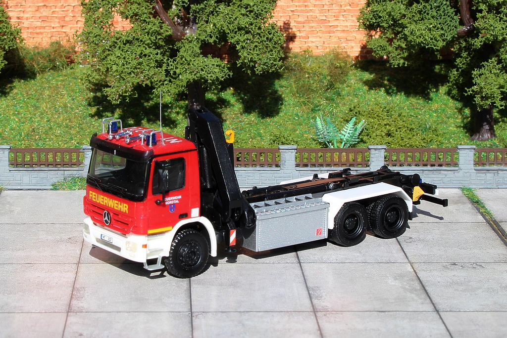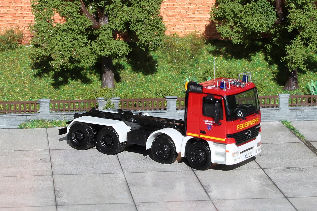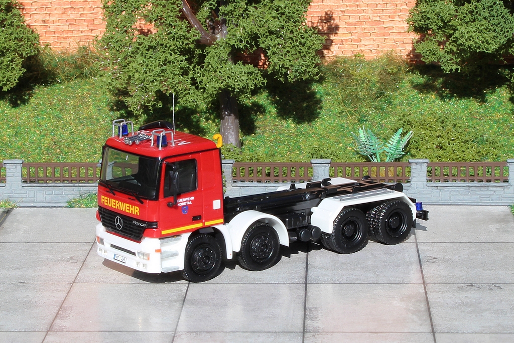 Als Ergänzung der Wechselladerflotte beschaffte die Feuerwehr Nordtal 1998 einen weiteren Actros an. Um in Zukunft auch schwerere Abrollbehälter transportieren zu können entschied man sich für ein 4-Achs Fahrgestell