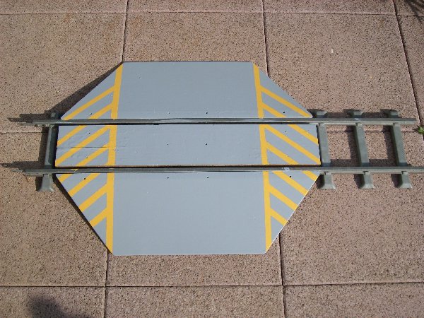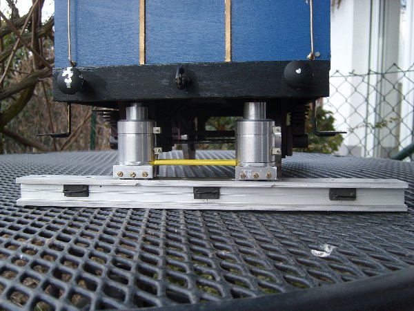 Im einzelnen besteht die Eingleisvorichtung aus einer Eingleisbrücke, zwei Rollwagen und 2 mechanisch ausfahrbaren Hubzylindern, die den Wagen um ca. 6 cm anheben können. Derzeit fehlt noch die Verschiebevorrichtung für die Verschiebung quer zum Gleis. Bilder vom ersten Eingleiseinsatz auf den Schienen gib es sobald meine Gartenhütte wieder zuläßt, das ich an meinen Schienen komme.