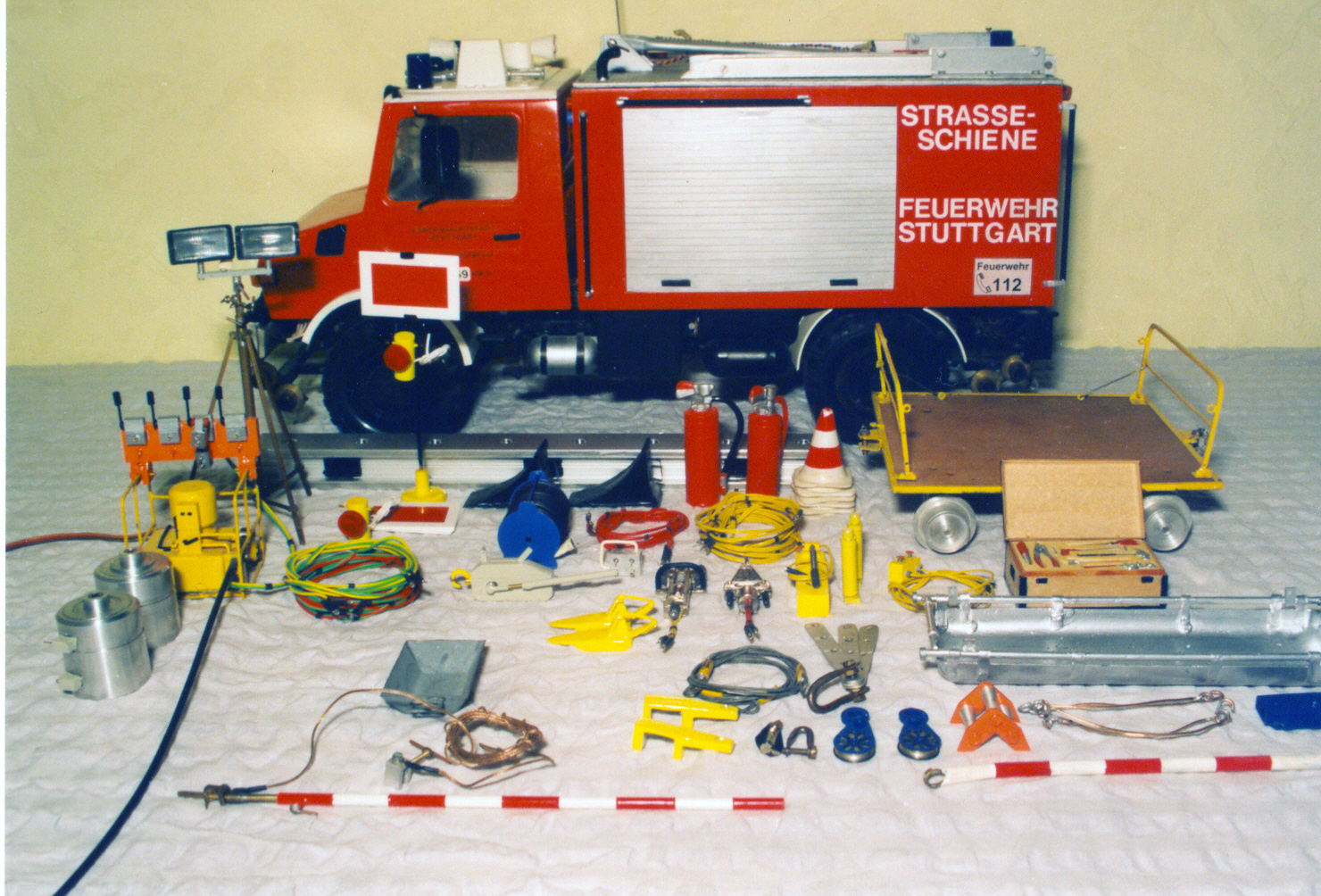 Aber die Feuerwehr Braunsweiler hat gut ausgebildetes Personal, das so etwas schnell beheben kann. Der Rüstwagen hat mittlerweile auch sein Aussehen etwas geändert. Die ursprüngliche Beschriftung der Feuerwehr Stuttgart wurde entfernt und gegen die Beschriftung der Feuerwehr Braunsweiler ausgetauscht. Ebenso wurde das Fahrzeug mit einer umfangreichen Umfeldbeleuchtung an Fahrerhaus und Aufbau ausgestattet. Mal sehen wer den Fehler beim Foto des Eingleisens als Erster findet?