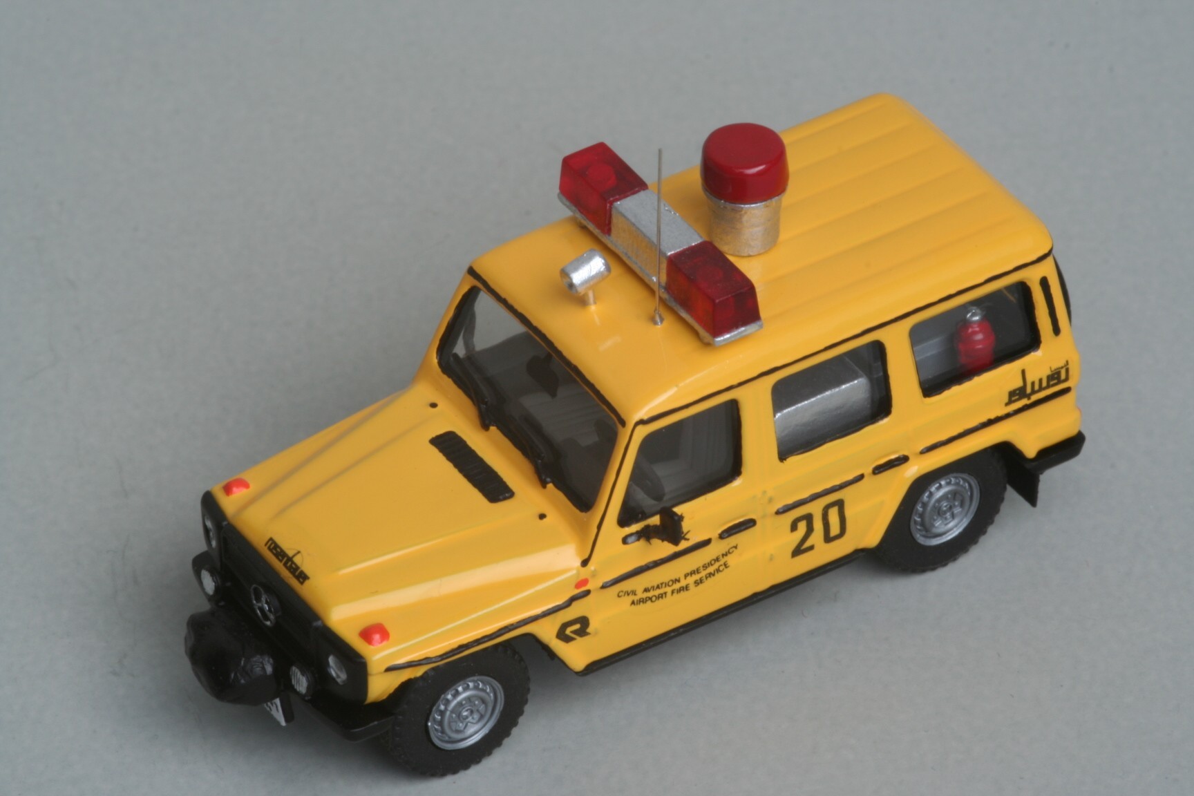 nach einigen Wochen mit akutem Zeitmangel soll es hier weiter gehen mit den Modellen der Flughafenfeuerwehr Riyadh, und zwar mit einem Vorausfahrzeug von Rosenbauer auf einem MB 280 GE Fahrgestell.