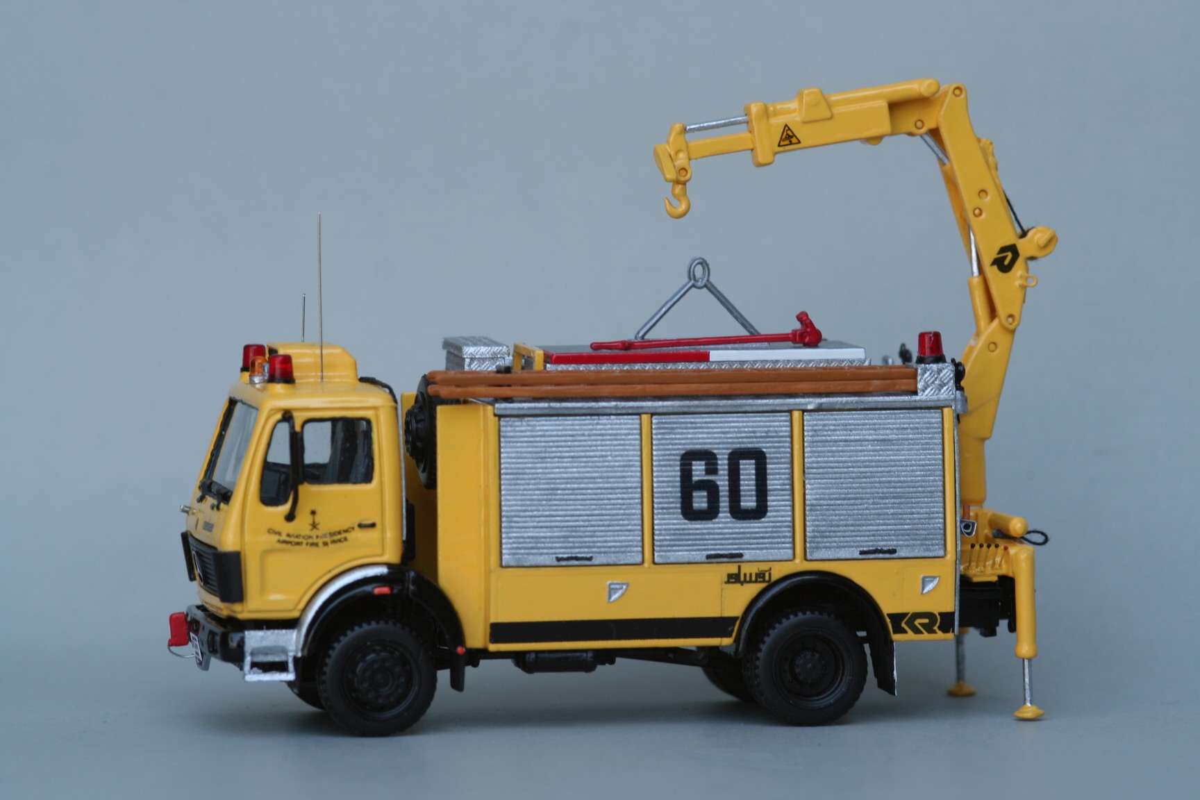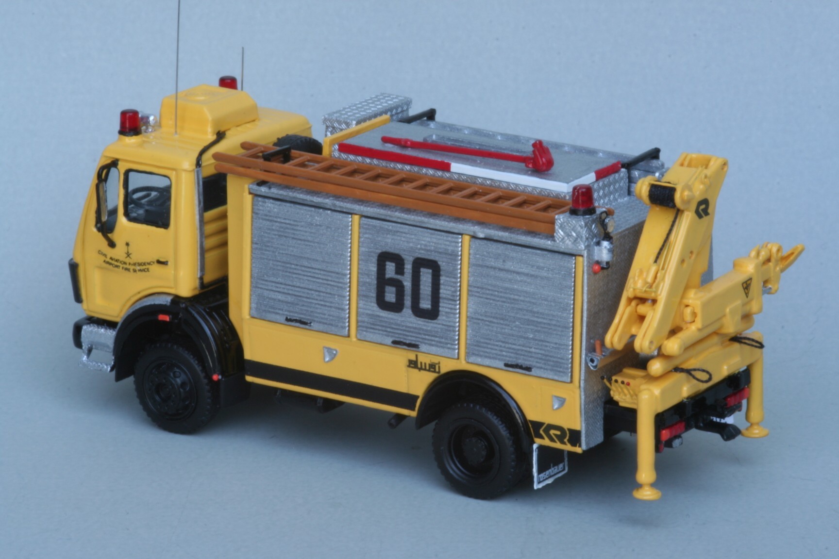 das Vorbild zum nächsten Modell der Flughafenfeuerwehr des King Khaled International Airport ist ein Rüstfahrzeug des Typs RFC 11 von Rosenbauer auf einem Mercedes-Benz Fahrgestell 1019 AF/36.