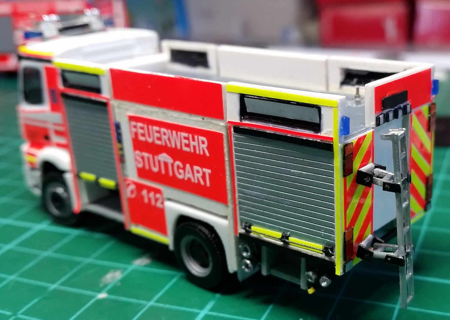 Wie auch immer, die Neuerungen sehen auch wieder klasse aus. Ich hatte mich vor vielen Jahren mal an zwei 1:24 Aufstiegsleitern versucht, allerdings habe ich da offensichtlich etwas gepfuscht. Bei Dir klappt das deutlich besser und sogar noch einige Nummern kleiner - Respekt!