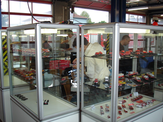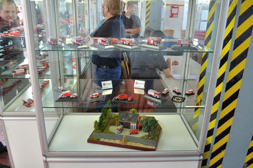 Aber auf den Punkt genau waren alle fertig - die Vitrinen bestückt - es konnte losgehen. Die ersten staunenden Besucher waren die Aussteller selbst - dazu muss man sagen, das Modelle "in natura" wesentlich besser und schöner aussehen als auf den hier im Forum geposteten Bildern. Die gesamte Zeit während der Ausstellung konnte man mit sehr interessanten Gesprächen mit ähnlich Verrückten verbringen, es wurden sehr interessante Tipps ausgetauscht und die "To do liste" verlängerte sich auch mal wieder deutlich. Nebenbei konnte man noch einige "Bröckchen" kaufen, denn die Fa. DS - Decals verkaufte während der Ausstellung ihre neuen "Dachgerätekästen in verschiedenen Größen" - auch ein exklusives Sondermodell der BF - Iserlohn war aufgelegt worden und fand sehr guten Absatz. Die Zeit verfloss und endete mit einer Ansprache des Chefs der BF in der er sich sehr herzlich bei den Ausstellern bedankte und glaube ich auch etwas staunte, wo die Aussteller so herkamen! :lol: Den Ausstellern wurde im Anschluss, als kleines "Dankeschön" (eigentlich war die sehr nette Betreuung von Grabo schon genug des Dankes :wink: ) an die Aussteller das bereits erwähnte Sondermodell übergeben und noch zusätzlich ein Einkaufsgutschein von der Fa. DS - Decal - da war ich dann aber platt. Noch mal vielen vielen Dank an die Modellbaugruppe der FW - Iserlohn und an die Fa. DS - Decals. Der Abend endete mit nem Bierchen und einem sehr netten Gespräch. Auf der Rückfahrt staunte ich nicht schlecht, denn ich bekam bei meinem Gasthof keinen Parkplatz! Im Gasthaus wurde Hochzeit gefeiert - die Lautstärke war dem entsprechend. Hm, die zweite Nacht ohne Schlaf ......? Erst mal Schlüssel geholt, den Abreisetermin klar gemacht und ab ins Zimmer. Nachdem nun aber zum 5. mal "Sing mein Sachse sing!" und "Öberkrämerspatzenpfeifen" gelaufen ist, wurde es mir zu viel. Ich zog mich an und unternahm einen Spaziergang durch die City von Lemathe, der um 2:00 Uhr endete. Kurz noch ferngeschaut und dann übermannte mich doch der Schlaf.