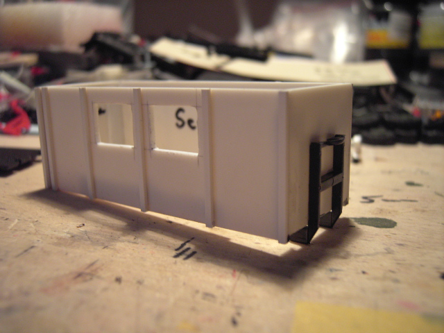 Den AB-TEL habe ich aus Evergreenplatten und Profilen und einer RMM AB-Grundplatte gebaut. Seitenteile und Dach auf Mass gesägt und die Fenster ausgebohrt und feilen