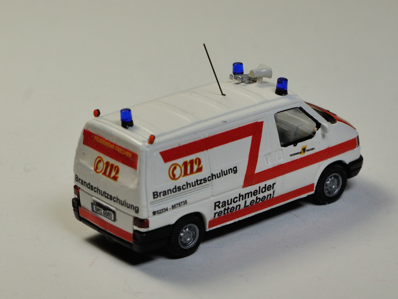 So schlecht ist der T5 von Rietze ja nicht; gut, Wiking hat "massivere" Scheinwerfer und bessere Seitenfenster, dafür kämpfe ich gerade mit einem extrem großen Spalt zwischen vorderem Stoßfänger und Karosserie beim (Polizei-) Wiking, da werde ich mit der Säge beim Zwischenboden ran müssen!