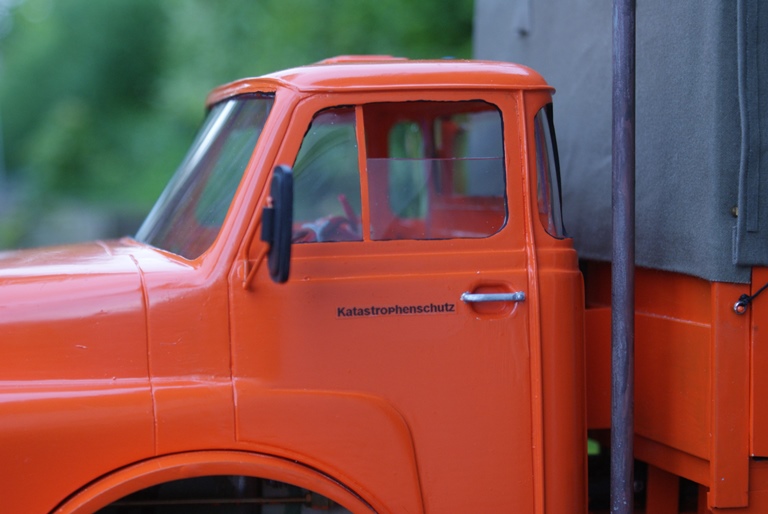 Wieder konnte ein gefürchteter Abschnitt des DMF fertiggestellt werden, der großflächig aber (hoffentlich doch) kaum zu sehen es ist. Es geht um das Thema Scheiben. Diese sind beim MAN- Hauber in allen möglichen und unmöglichen Form gebogen. 0,7 mm Polycarbonatplatten und eine ordentliche Portion Wärme aus dem Heißluftgebläse haben es aber vollbracht. Eingeklebt wurden die Scheiben mit glänzendem Klarlack. Braucht zwar einige Zeit zum Trocknen, mindert aber die Gefahr von Kleberschäden.