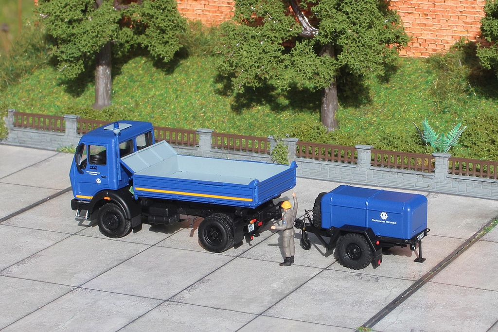 für den zweiten Instandsetzungszug habe ich den passenden Kipper auf MB NG 1217 Allrad gebaut. Diese Kipper wurden Ende der 70er Jahre für die Instandsetzungszüge des Technischen Hilfswerk beschafft: