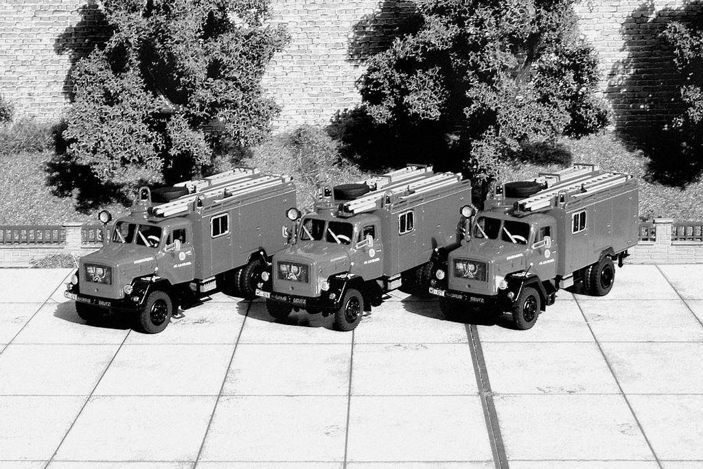 Damit habe ich nun endlich eine komplette LS-Feuerwehrbereitschaft in der Vitrine stehen! Ich werde demnächst auch noch ein paar Fotos der kompletten Bereitschaft hier zeigen. Zurzeit habe ich allerdings erhebliche Platzprobleme die 12 Fahrzeuge auf meiner Fotoplatte unter zu bekommen.... Mal sehen was ich da mache.