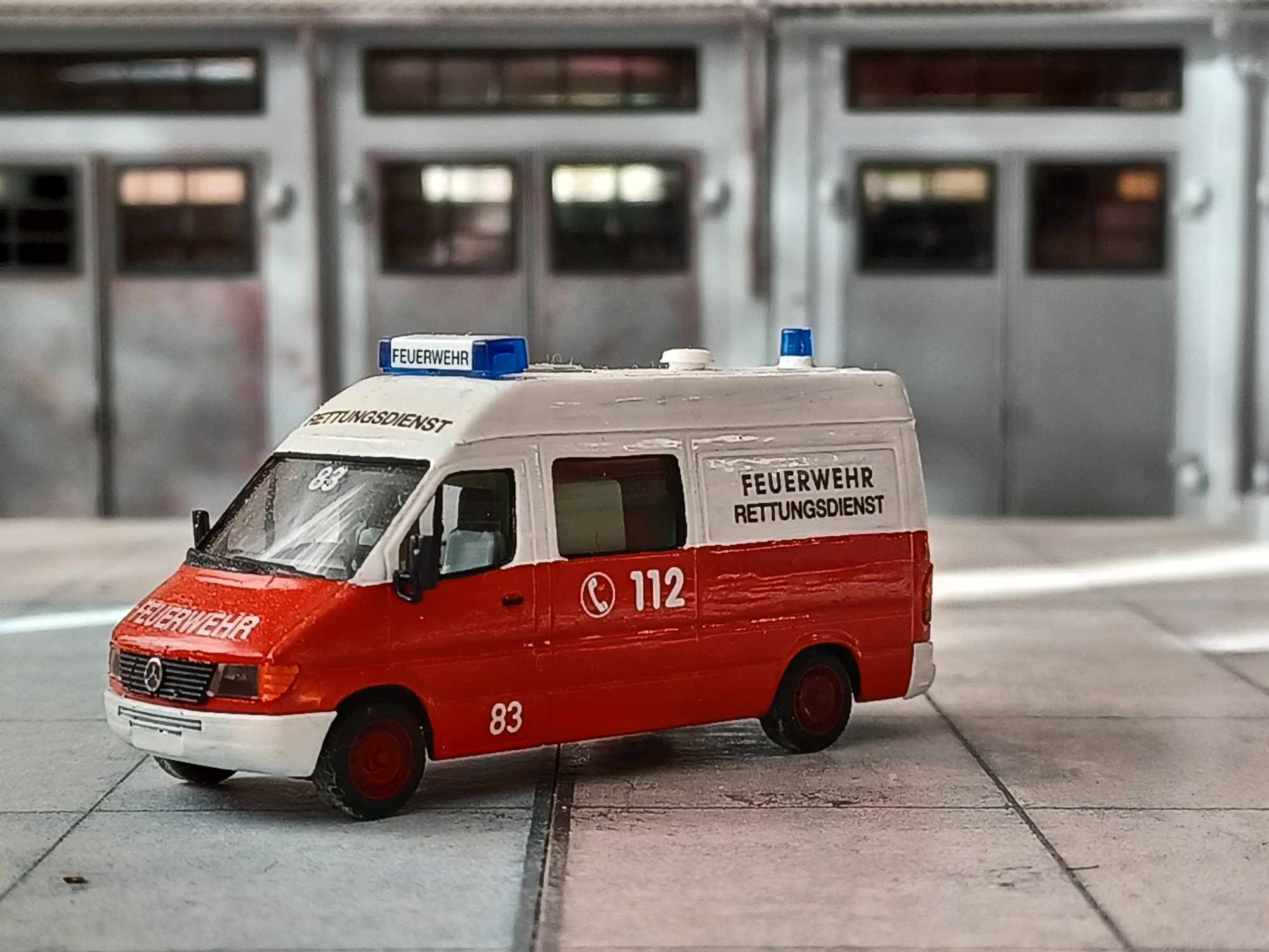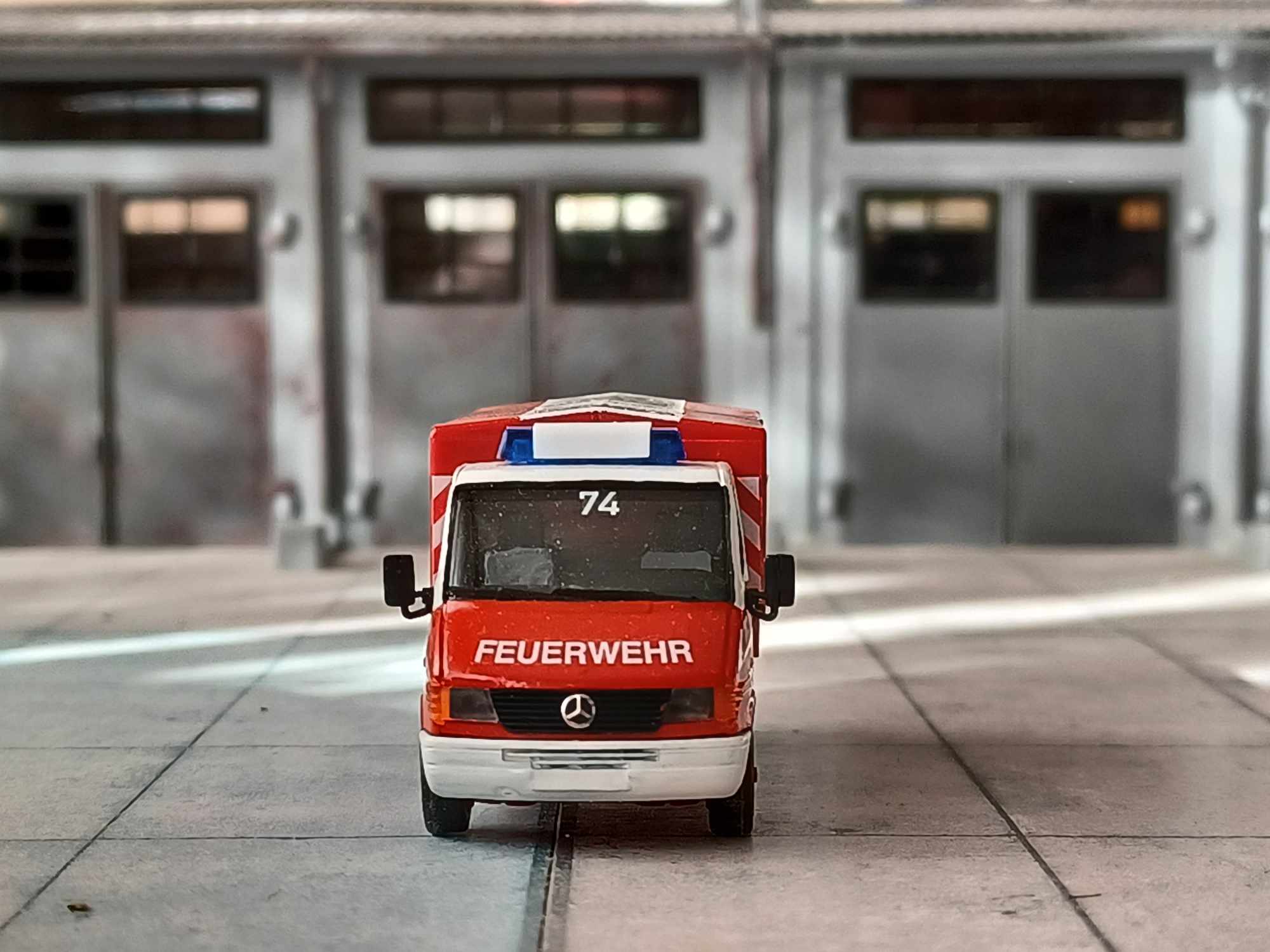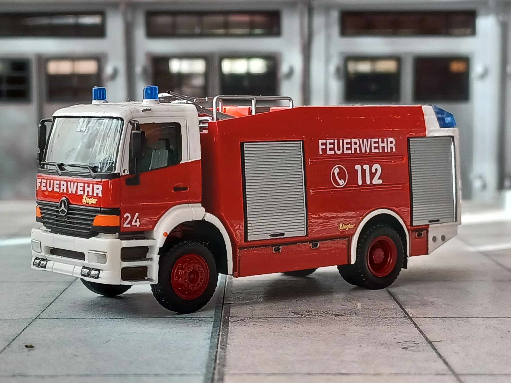 Mercedes-Benz Atego 1528 F, DLK 23/12 Metz Mercedes-Benz Atego 1325 AF, LF 16/12 II, Aufbau Ziegler Mercedes-Benz Atego 1820 AF, TLF 24/50, Aufbau Ziegler Mercedes-Benz Atego 1325 AF, RW 2 Aufbau Ziegler Mercedes-Benz Sprinter T1, RTW Aufbau Binz Alle Modelle sind von Herpa und wurden neu lackiert und mit Kleinteilen und Decals versehen.