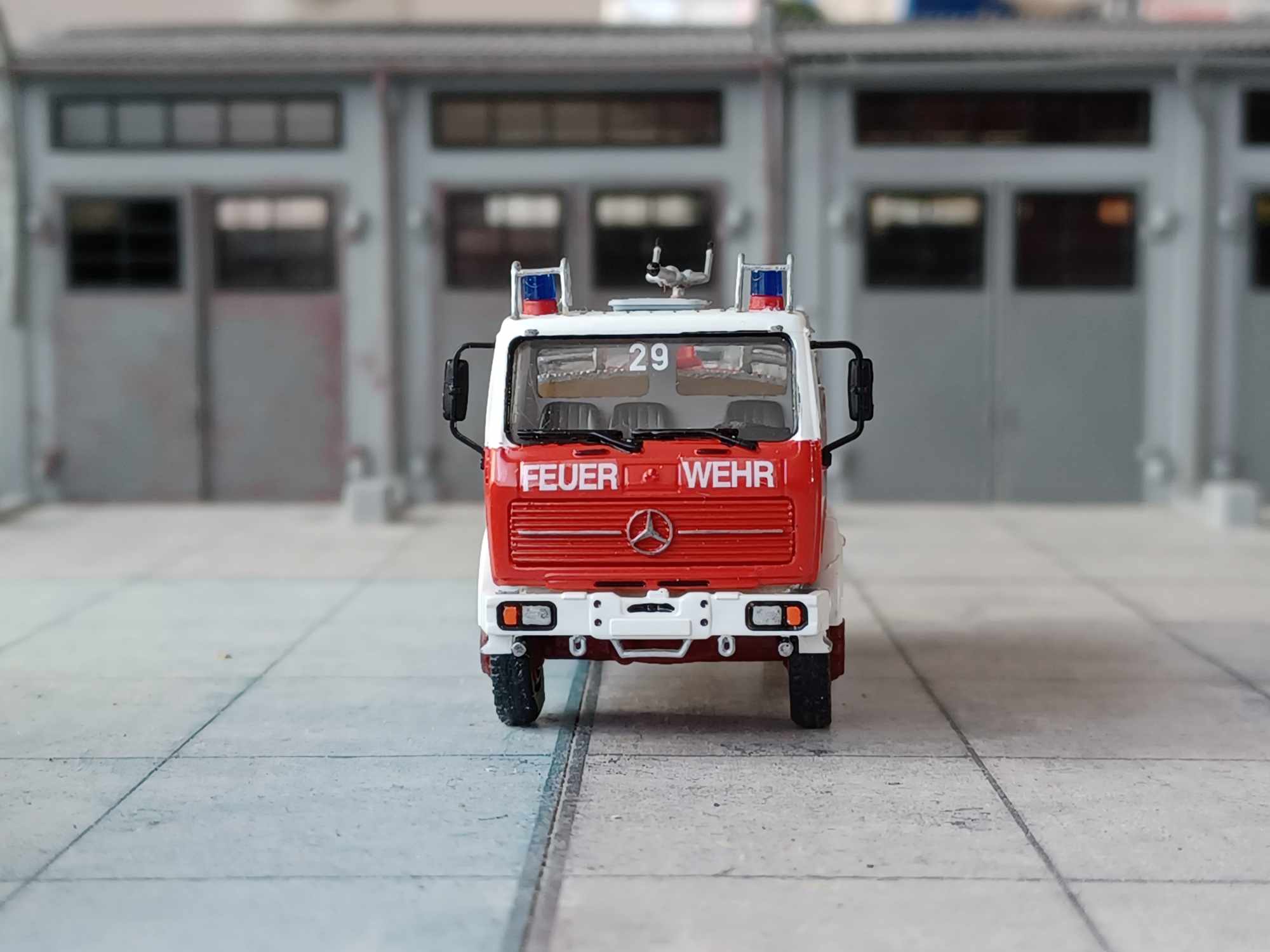 1989 beschaffte man als Ersatz für ein TSF ein neues Löschgruppenfahrzeug LF 8. Die Wahl viel auf ein Fahrzeug nach Beladeplan 1, da das GH nicht sehr groß war und ein Neubau finanziell nicht möglich war. Aufgebaut auf einem Mercedes-Benz 711D, Aufbau Schlingmann. Das Fahrzeug wurde bereits zum dritten mal um stationiert ist aber weiterhin treu im Dienst. Das Modell entstand aus einem gebrauchten MEK Bausatz/Fertigmodell. Die Dachbeladung ist von Preiser, dazu ein paar Kleinteile und Decals