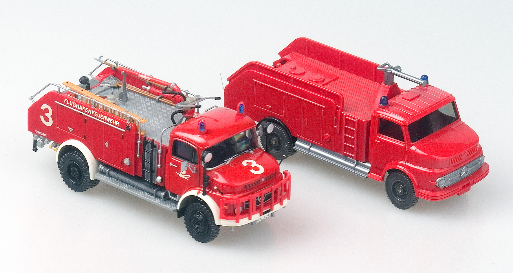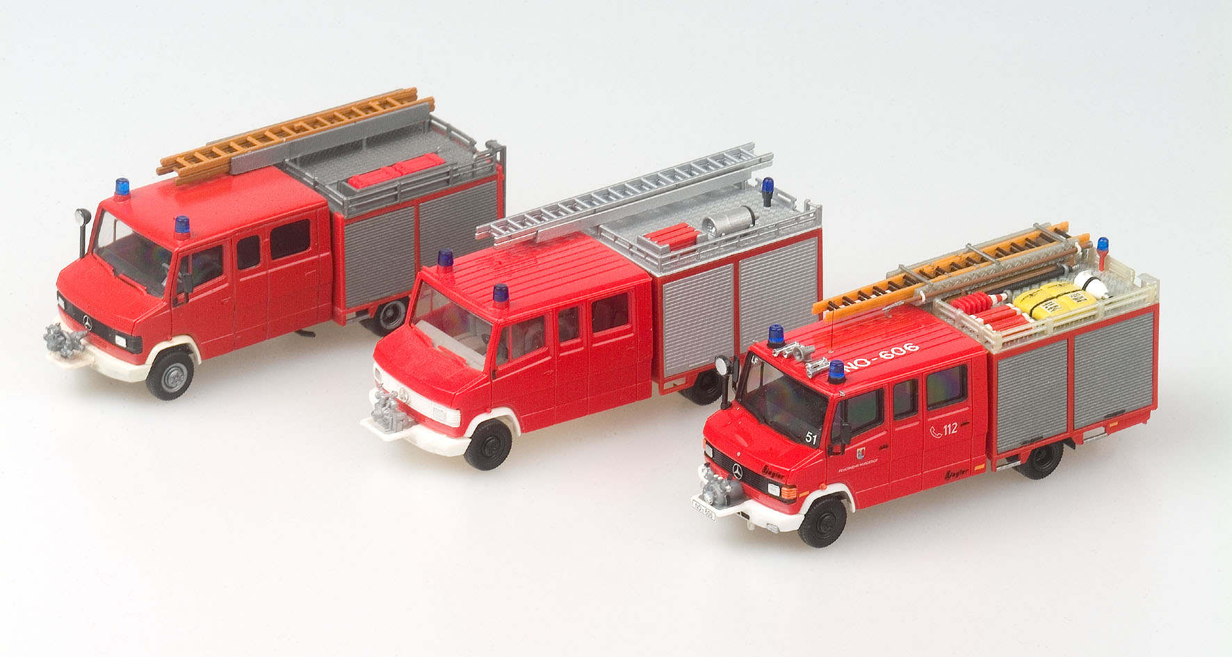 Zum guten Schluss noch eine absolut seltene Aufnahme: Mein Handmuster des Herpa-LF 8 für die Spielwarenmesse 1987, zusammen mit dem Modell aus der Großserie und der gepimpten Nordstadt-Version.