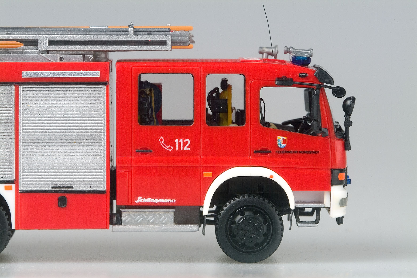 Um nun aus dem Ziegler-LF 8-2 das etwas kleinere LF 8 nach Beladeplan 1 zu bauen, bedarf es – grob gesagt – nur einer scharfen Säge, etwas Schleifpapier und etwas mehr Geduld! Außerdem sollte man noch ein Roskopf-TLF 8 übrig haben; denn der neue Gerätekoffer ist ein halbierter TLF-Aufbau, dessen Hinterteil ziemlich genau den Abmessungen eines LF 8-1 entspricht. Geringfügige Abweichungen in der Breite des Heckgeräteraums und der Gesamthöhe können wohl vernachlässigt werden.