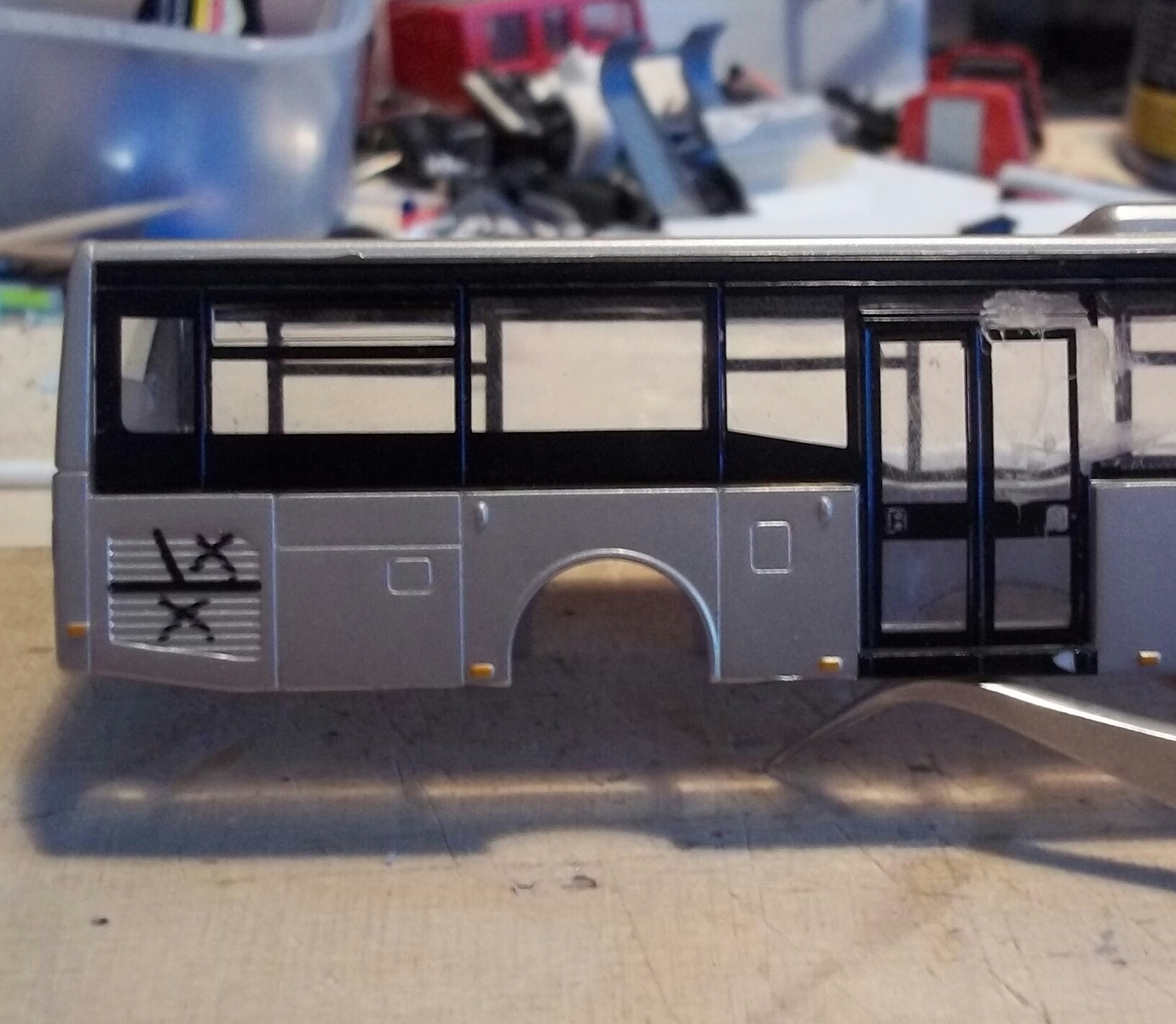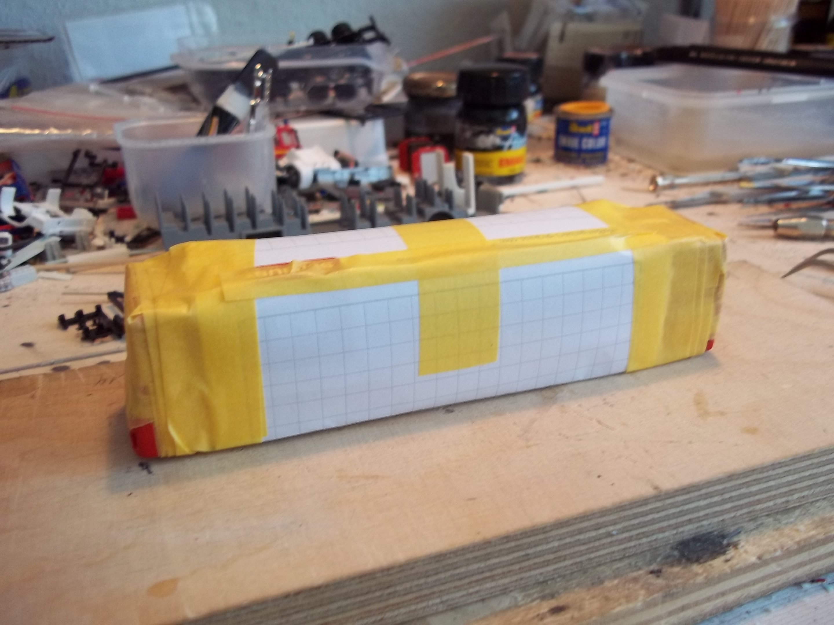 An der Lüftung hinten habe ich mir dann angezeichnet was gespachtelt wird. Da die im Original kleiner ist wie beim Modell.