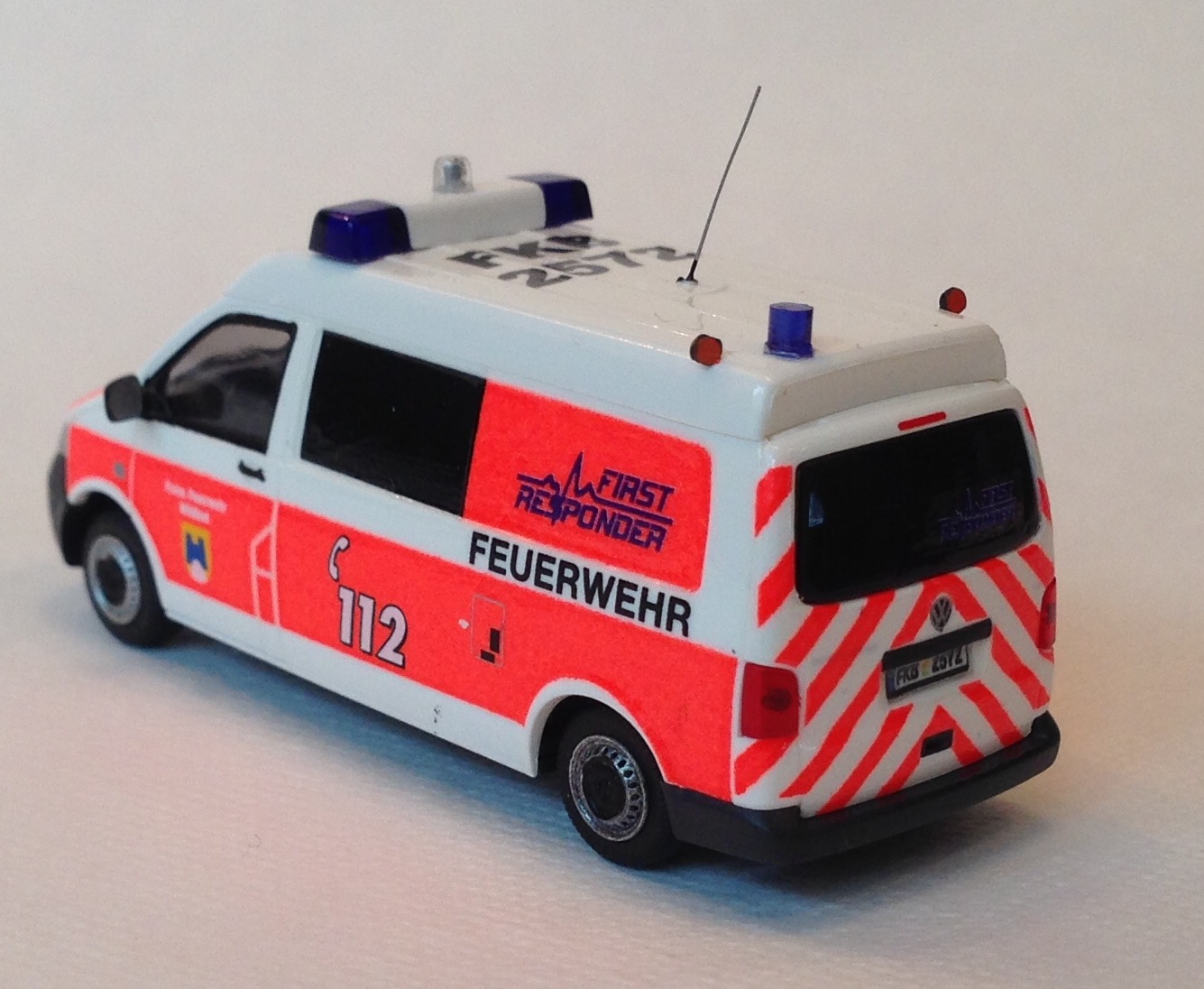 1. Stammen die Blaulichtbalken vom ELW von Rietze (70252 LED Blaulichtbalken)? Hast du sie in der Mitte lediglich mit schwarzer Farbe oder einem Decal versehen?