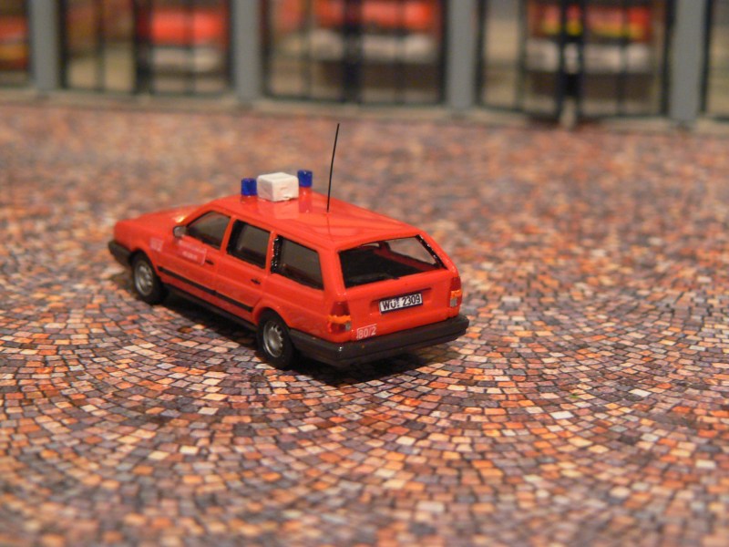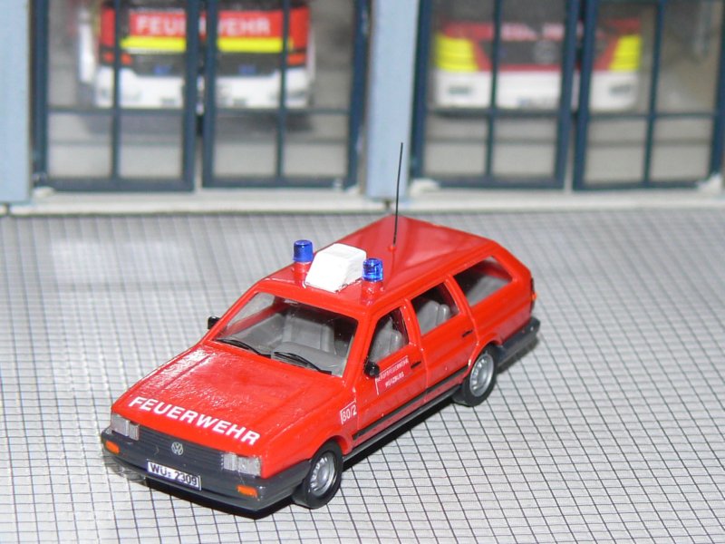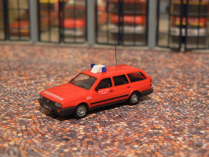 Heute kam ein "Oldie" hinzu. Das Fahrzeug ist nicht mehr in Betrieb und die genaue Bezeichnung kenne ich nicht. Ich habe nur herausgefunden, dass die 80 für "Kombiwagen" steht. In 90er Jahren gab es bei der BF wohl auch einen Passat als KDOW aber mit anderem Funkrufnamen. Ich werde mich diesbezüglich aber nochmal schlau machen. Für die Erstellung hatte ich leider nur ein Frontfoto.
