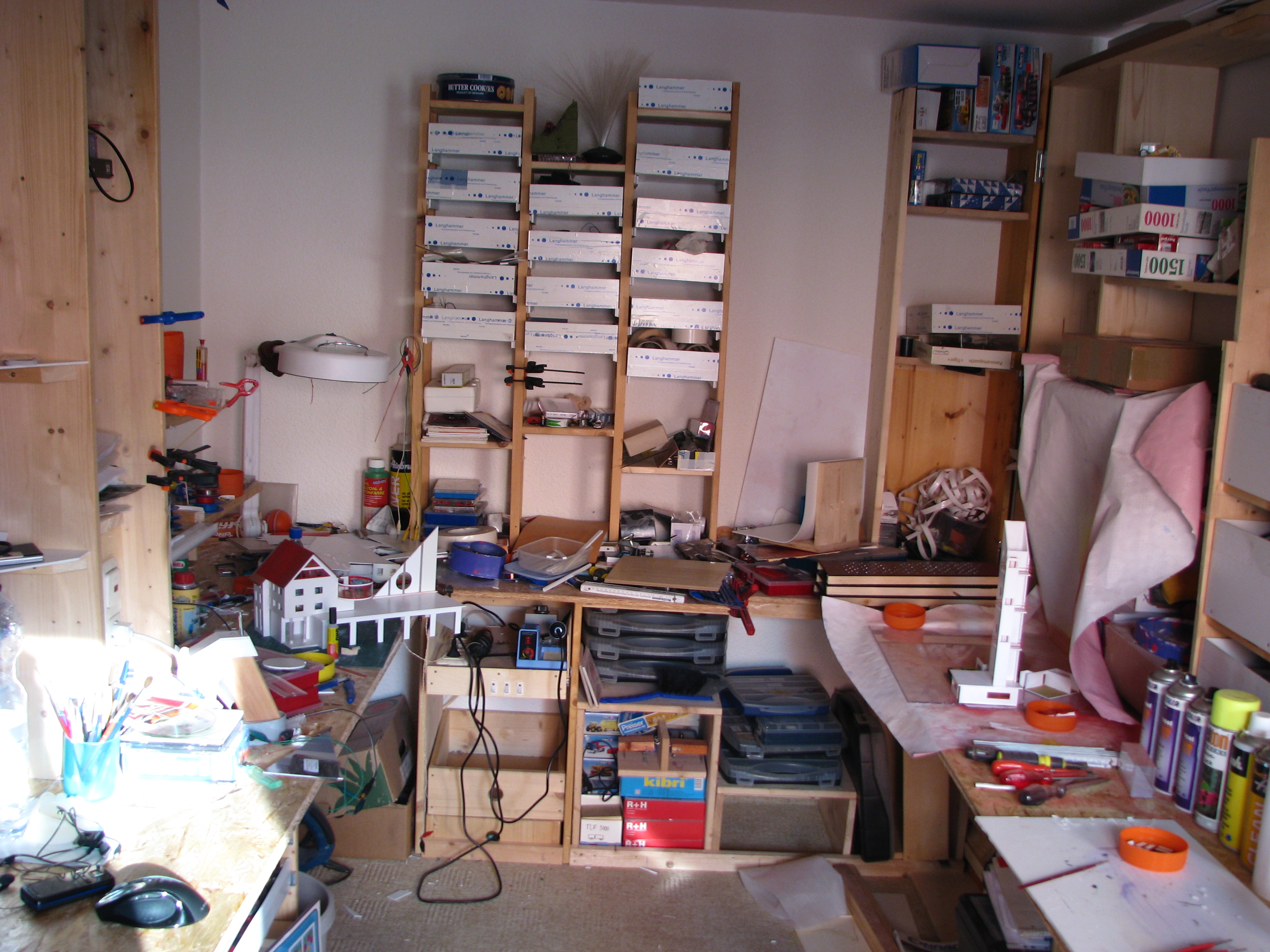 Also ich hab in meinem Wohnzimmer eine Ecke für den Modellbau, leider ist der Basteltisch vieeel zu kleing