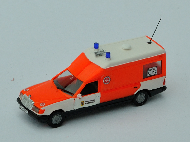 Der VW Passat fuhr von 1985 bis 1993 als NEF. Das IMU-Modell wollte nach dem Zerlegen und lackieren absolut nicht mehr zusammengebaut werden. Sieht irgendwie etwas schief aus...