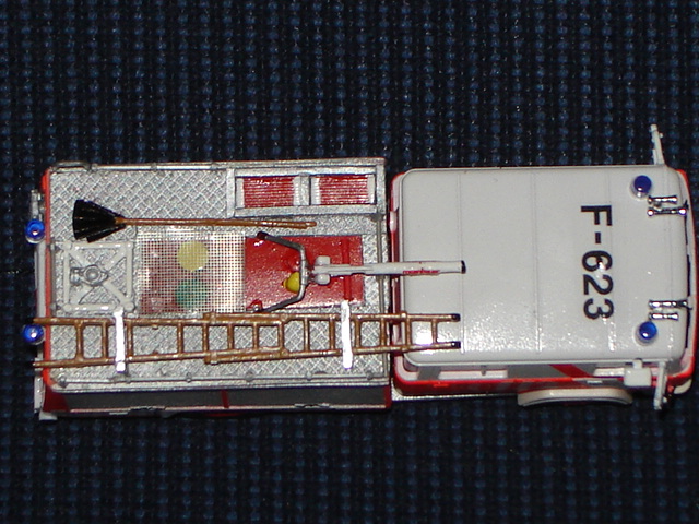 wieder ist ein Frankfurter Fahrzeug fertig. Es handelt sich um das TLF 16 der ehemaligen Wache 4 (Kennzeichen F-623). Den Aufbau habe ich, dem Original entsprechend, etwas tiefer gelegt als beim HLF. Meines Wissens gab es einige Fahrzeuge mit dieser etwas tiefer gelegten Aufbauvariante. Die Beschriftung des Kühlergrills besteht aus den Schriftzügen "Magirus" und "Iveco", wie es wohl ab 1983 praktiziert wurde.