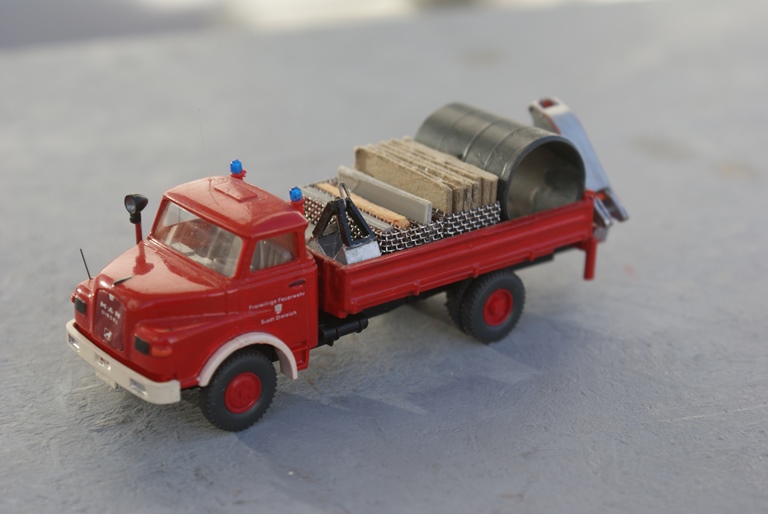 Besonders gelungen finde ich das HLF auf Magirus D und den GW-G auf MB LP mit den geöffneten und bestückten Geräteräumen :!: