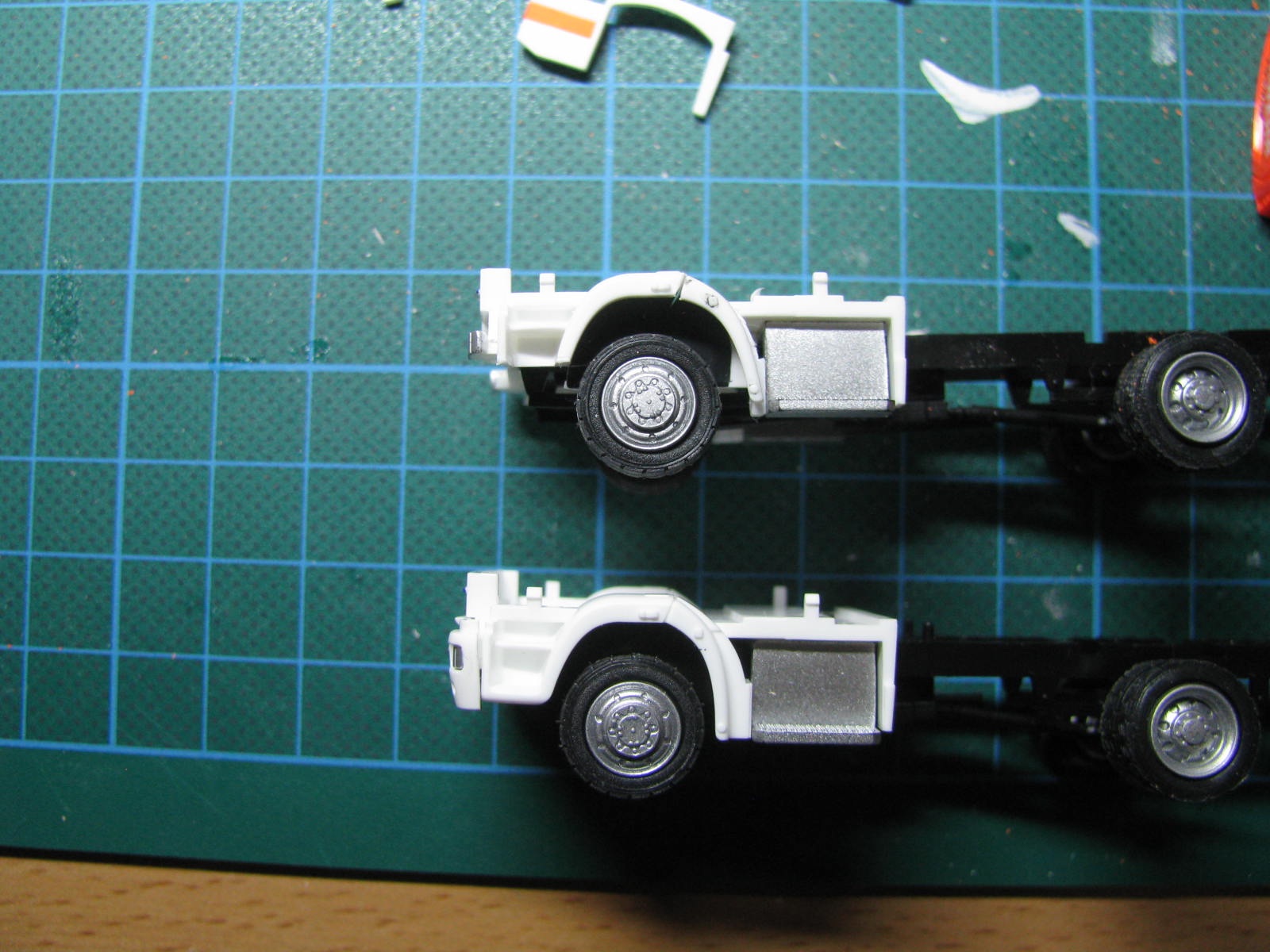 Die änderung am Radkasten ist im zweiten Bild sichtbar. Oben im Bild die geänderte Form und drunter sichtbar das Original von Rietze.