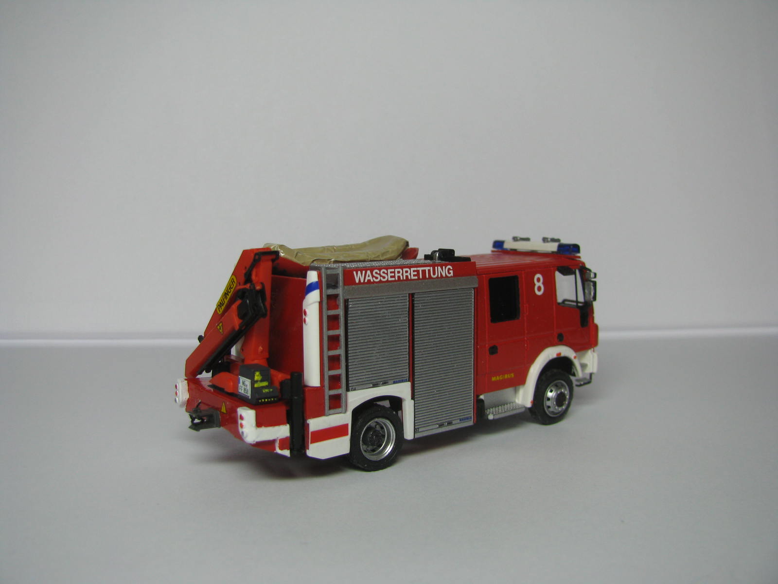 Würde ich so einen modernen GW nachbauen, würde ich ggfs. eine Einzelbereifung und Seilwinde vorsehen und die Heckpartie noch etwas verändern. Das liegt aber nicht an deinem Modell, sondern daran, dass mir die weißen globigen Lampen - Dinger vom EuroFire 3 nicht gefallen!