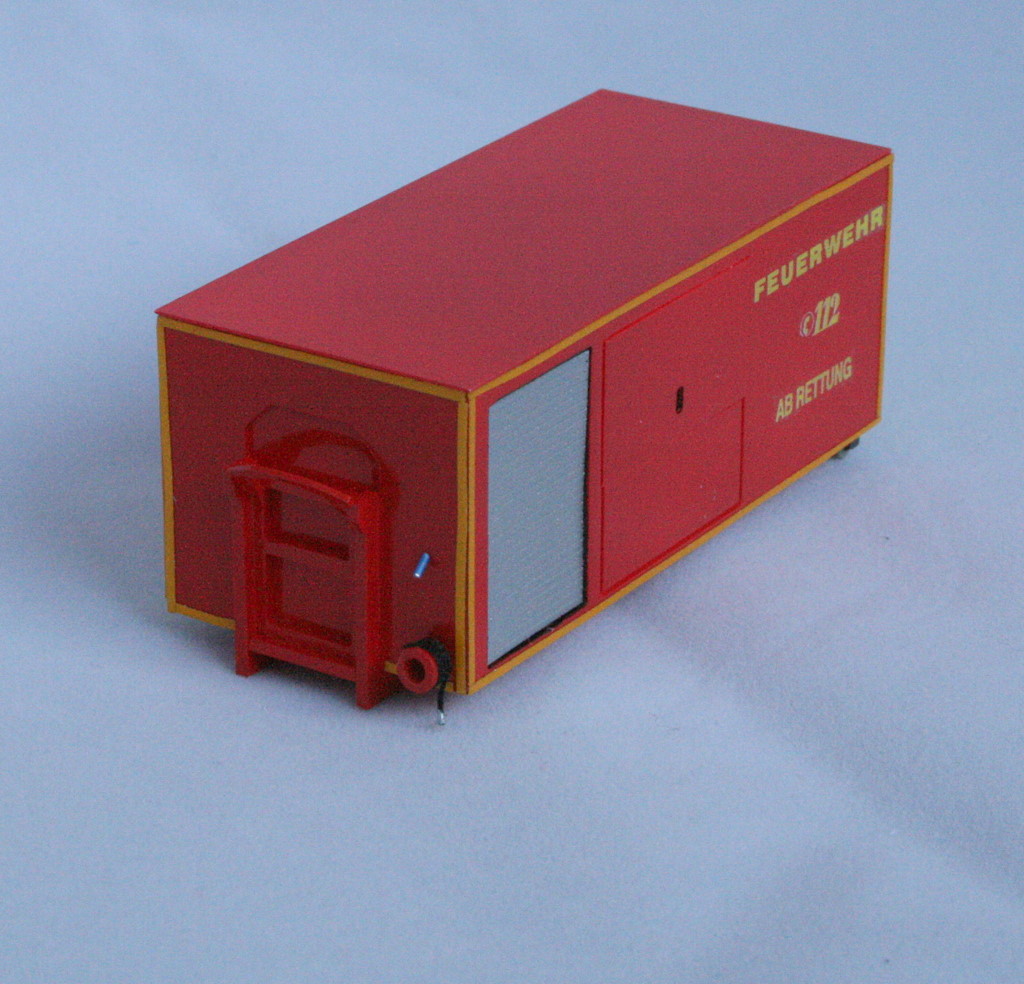 Nun zwei neue Abrollbehälter.Zum einen der AB-Rettung, dieser entspricht in seiner Beladung dem AB-MANV, hat aber eine andere Bauart.