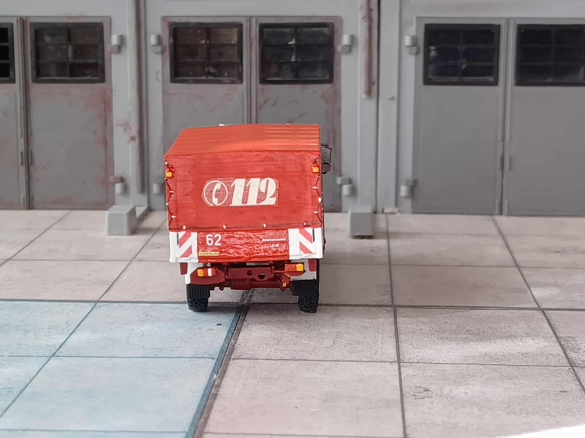 Weiter geht es mit einem Fahrzeug welches 1992 vom Katastrophenschutz beschafft wurde. Es ist ein Schlauchwagen SW 2000 auf Mercedes-Benz Unimog U 1550 L/45, Aufbau Lentner. Das Fahrzeug wurde vor Übergabe im Design neu lackiert und gehört bis heute zum KatS LZ-W. Das Modell entstand aus dem Bausatz von Mickon. Dazu nur ein paar Decals und Farbe.