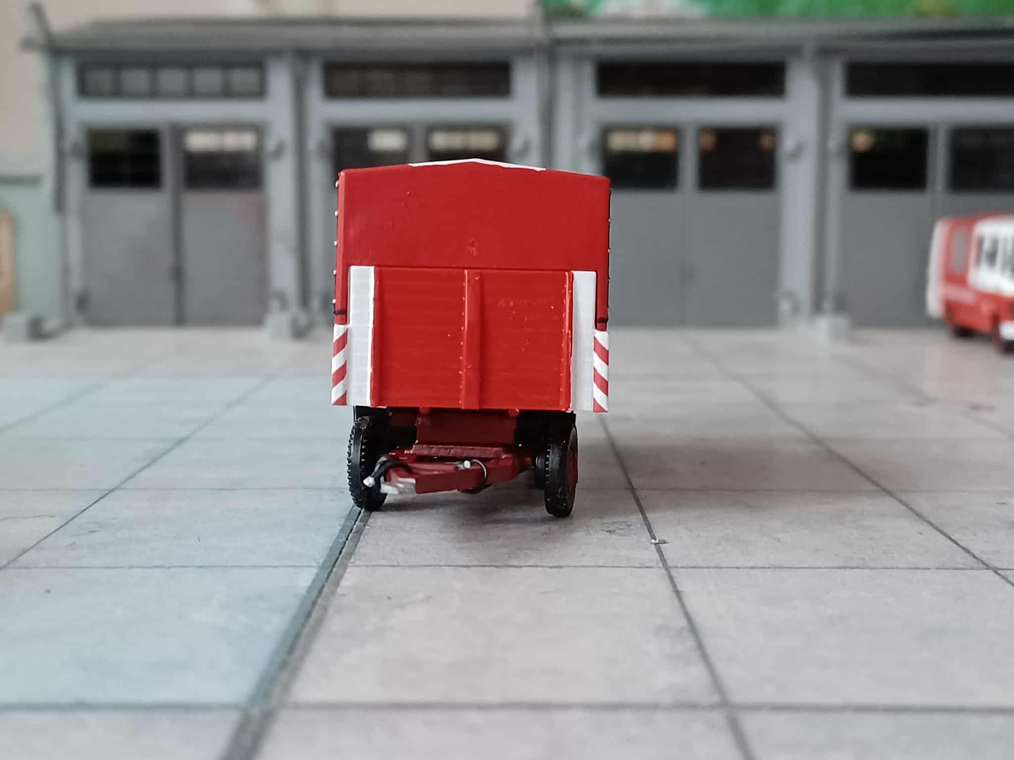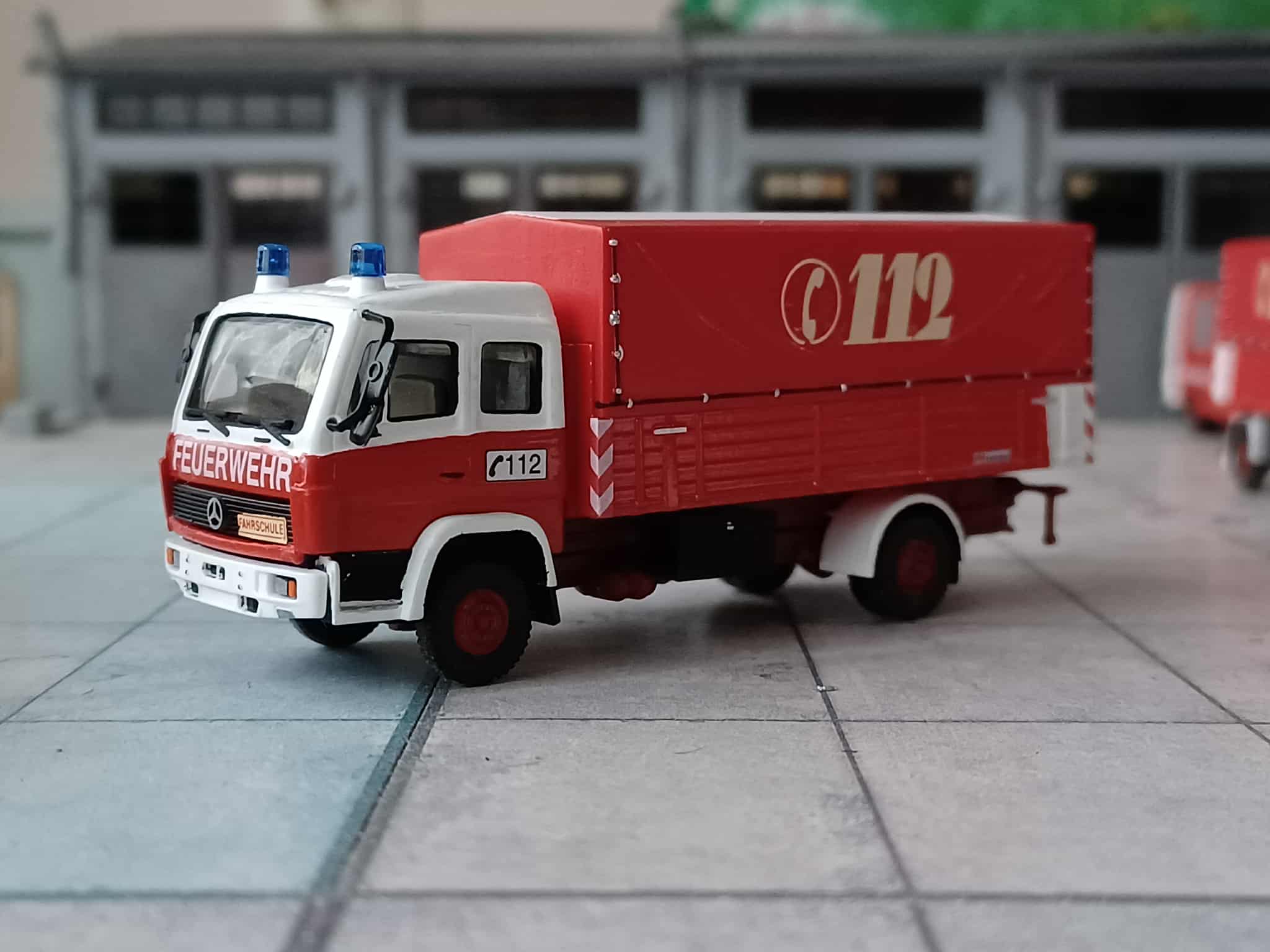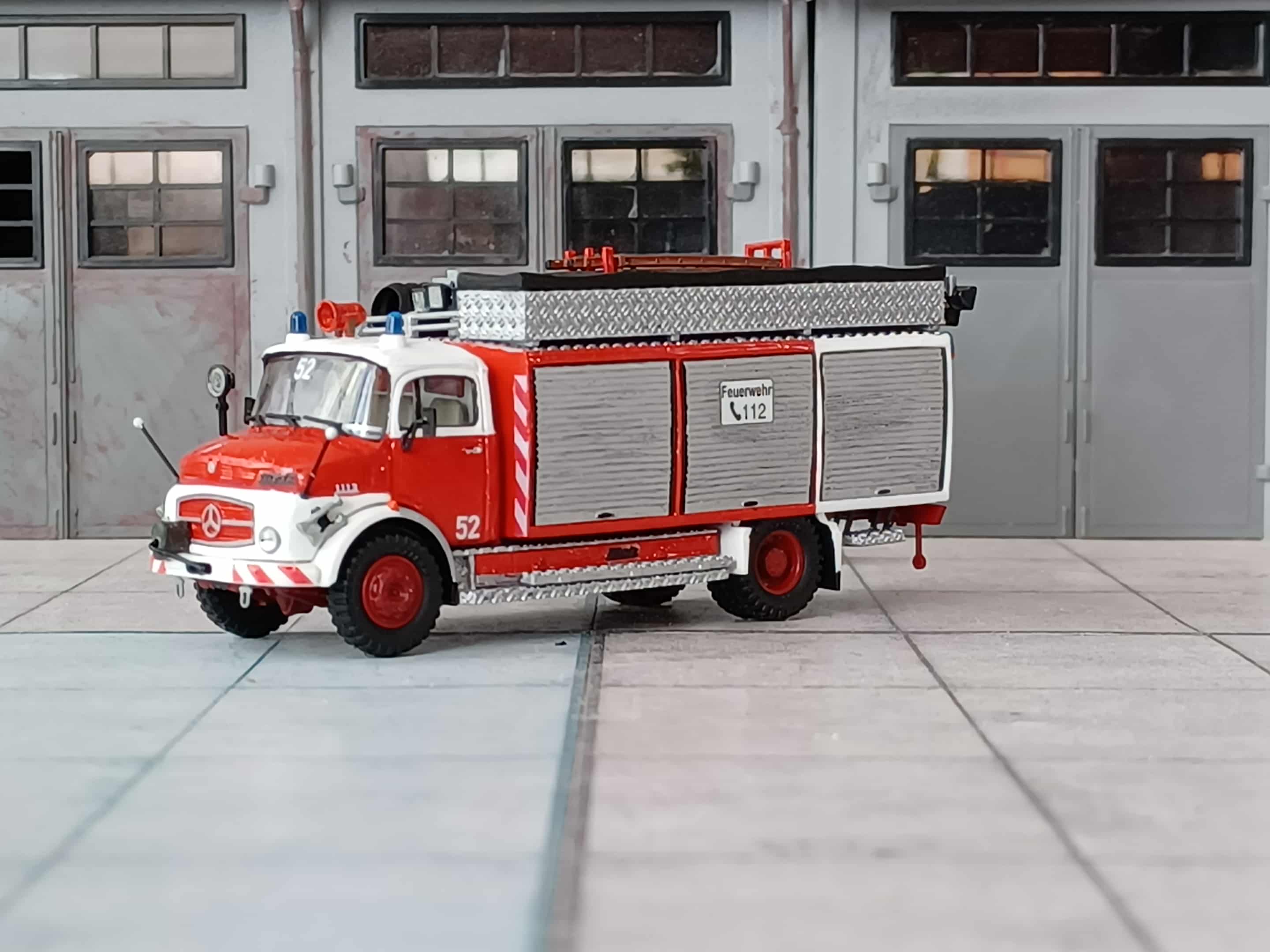 Aufgrund gestiegener Einsatzzahlen von Verkehrsunfällen und die Inbetriebnahme der Autobahn beschaffte man 1974 einen Rüstwagen RW 2 auf Mercedes-Benz LAF 1113 B/42, Aufbau Metz. Das Fahrzeug erhielt kein Schlauchboot, dafür aber einen großen Dachkasten und im Heck einen großen Lüfter. Das Fahrzeug blieb bis in die 2000er Jahre noch im Dienst und ist bis heute erhalten. Das Modell entstand aus Bauteilen von Preiser und einem 3D Druck Aufbau von N.Bürger. Dazu ein paar Kleinteile und Decals