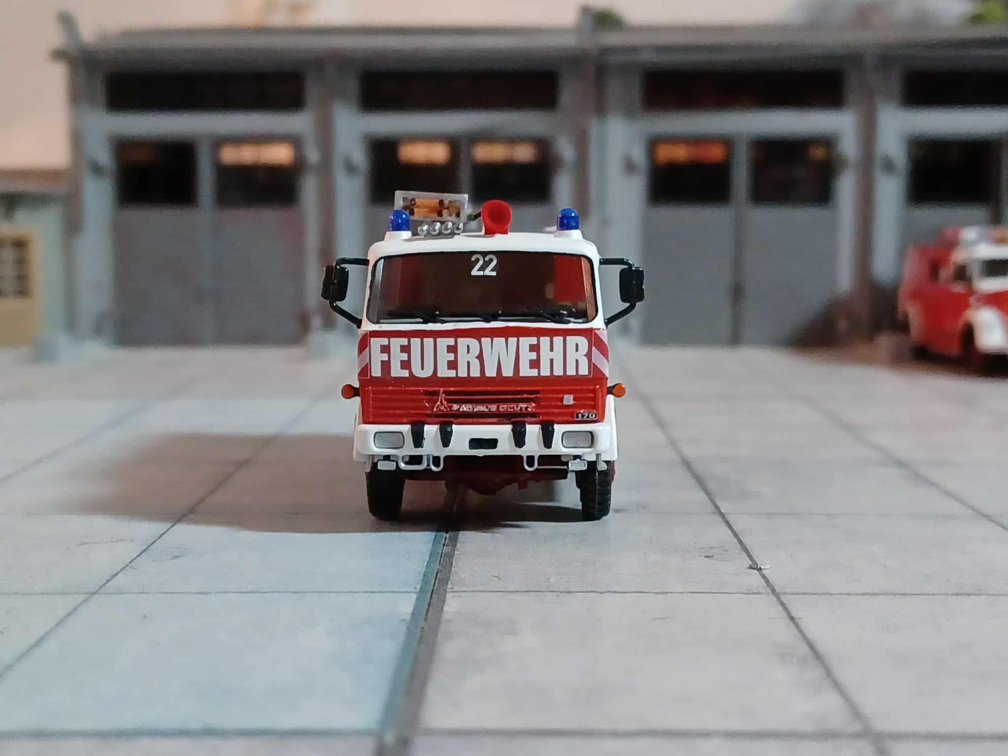 Ebenfalls 1974 beschaffte man ein Tanklöschfahrzeug TLF 16 auf Magirus Deutz 170 D 11 F, Aufbau Magirus. Im Gegensatz zu den anderen vorhandenen Fahrzeugen wurden hier die Rollläden in rot lackiert. Das Fahrzeug blieb bis 2011 in Dienst und wurde dann an eine Partnerfeuerwehr abgegeben. Das Modell ist von Roco und wurde neu lackiert. Die Reifen wurden gegen welche vom Steyr ausgetauscht. Dazu noch ein paar Kleinteile und Decals.