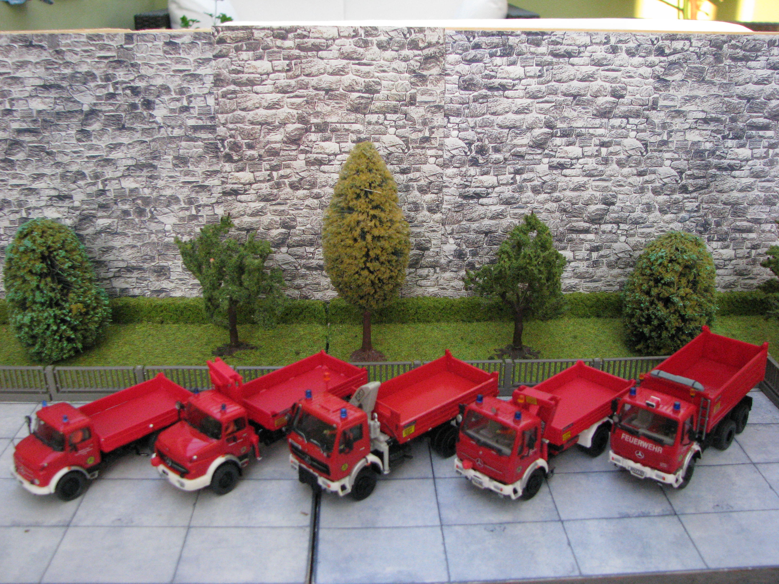 So und da heute schönes Wetter ist wurden gleich mal alle fünf Kipper zum Ablichten auf den Hof gefahren.